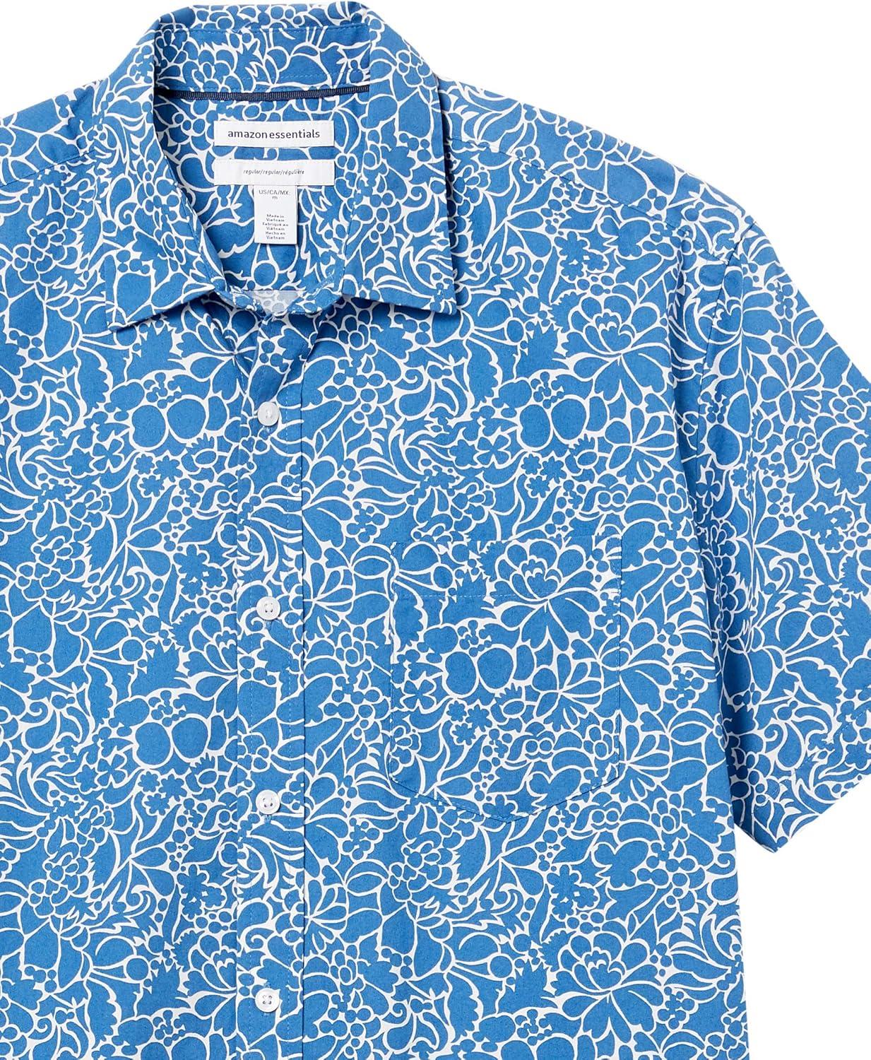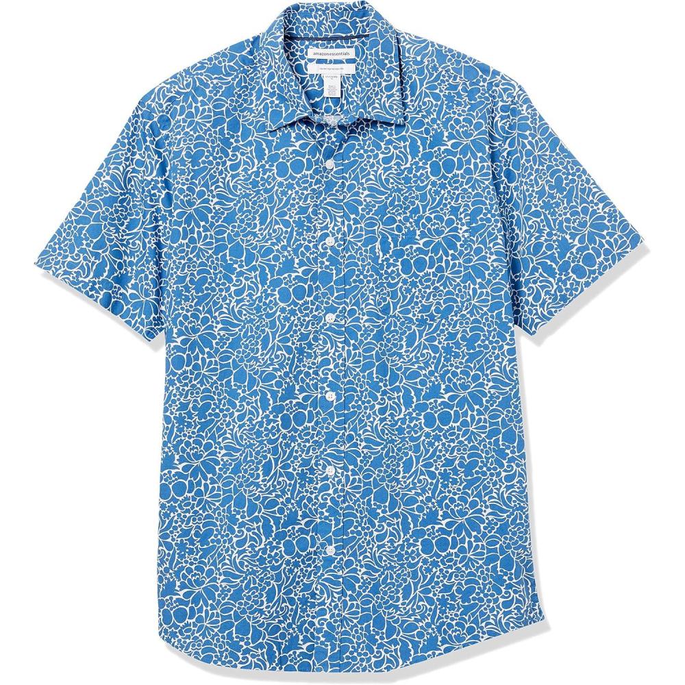 Amazon Essentials Men's Regular-Fit Short-Sleeve Poplin Shirt(Navy Floral)