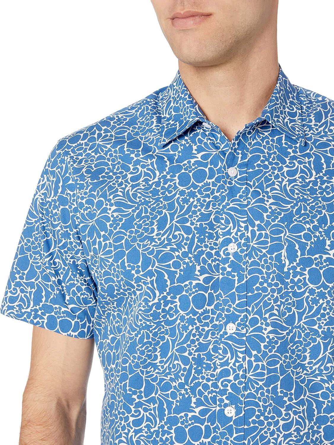 Amazon Essentials Men’s Regular-Fit Short-Sleeve Poplin Shirt(Navy Floral)