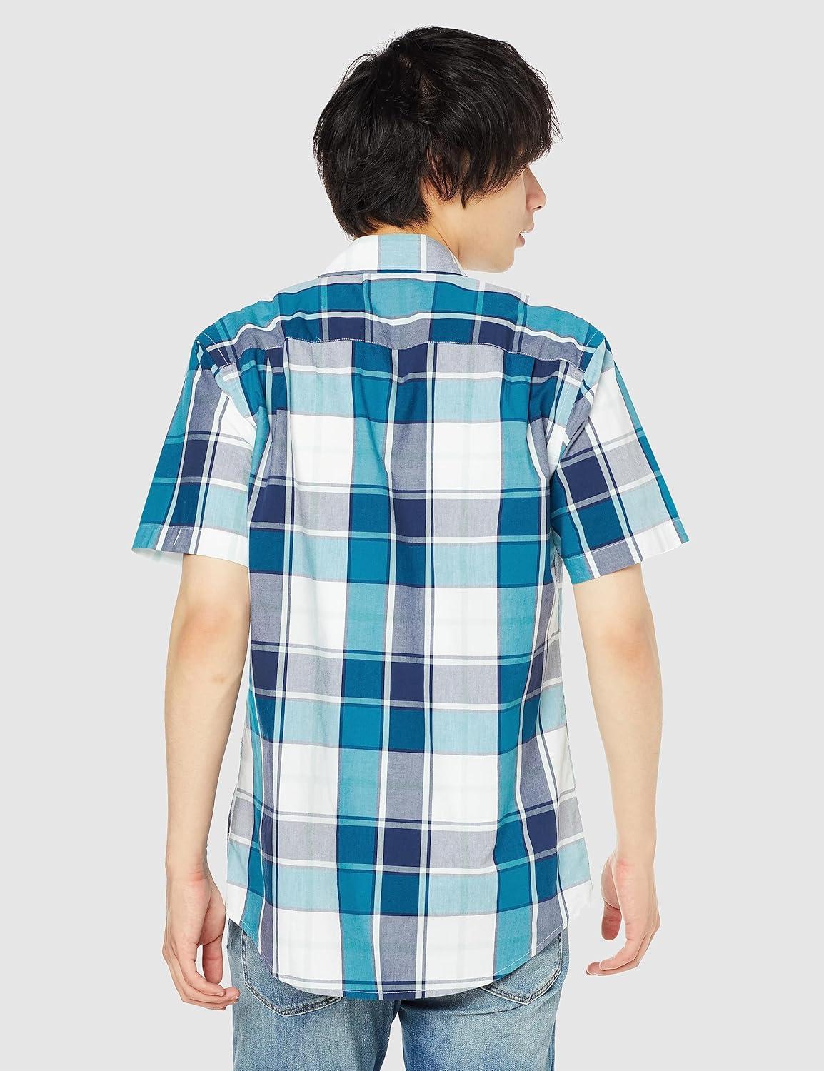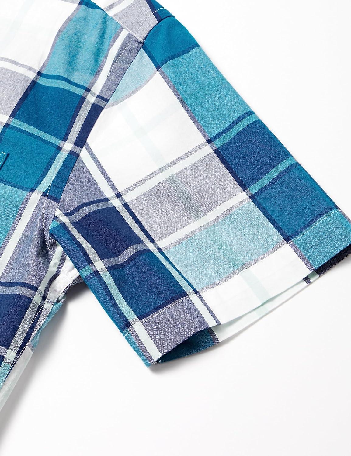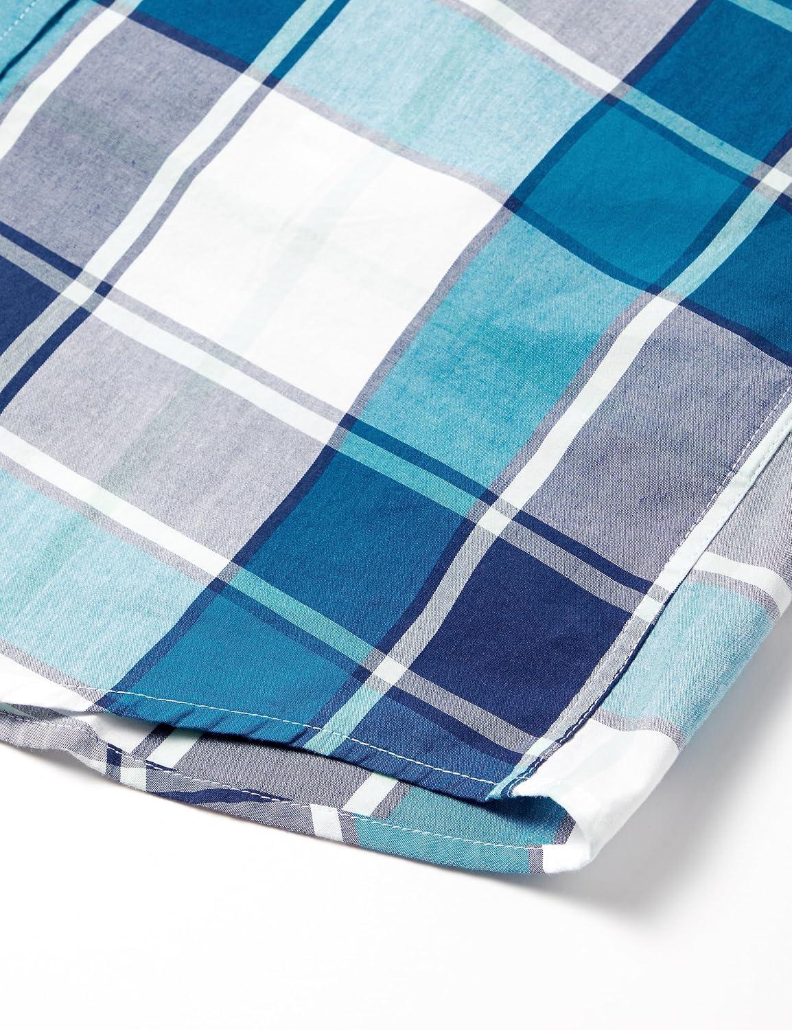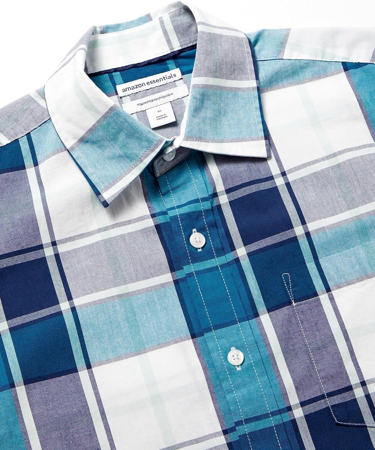 Amazon Essentials Men’s Regular-Fit Short-Sleeve Poplin Shirt(Teal Blue White Large Plaid)