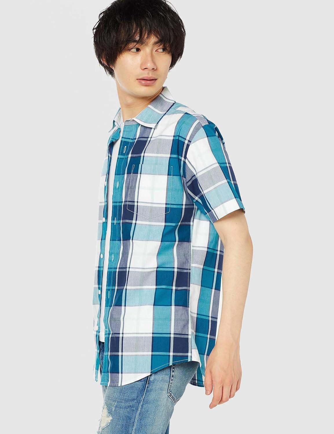 Amazon Essentials Men's Regular-Fit Short-Sleeve Poplin Shirt(Teal Blue White Large Plaid)