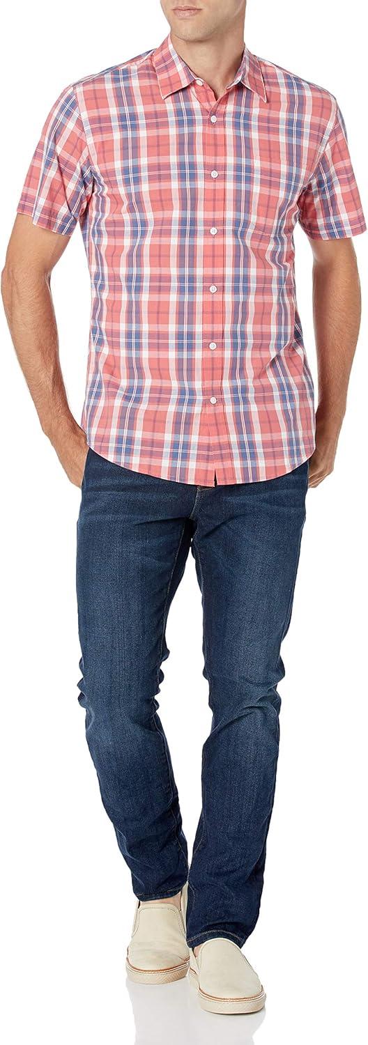 An Amazon brand – This short-sleeve button-front shirt features an allover plaid print for versatile, everyday style
