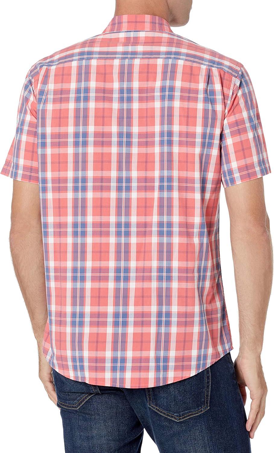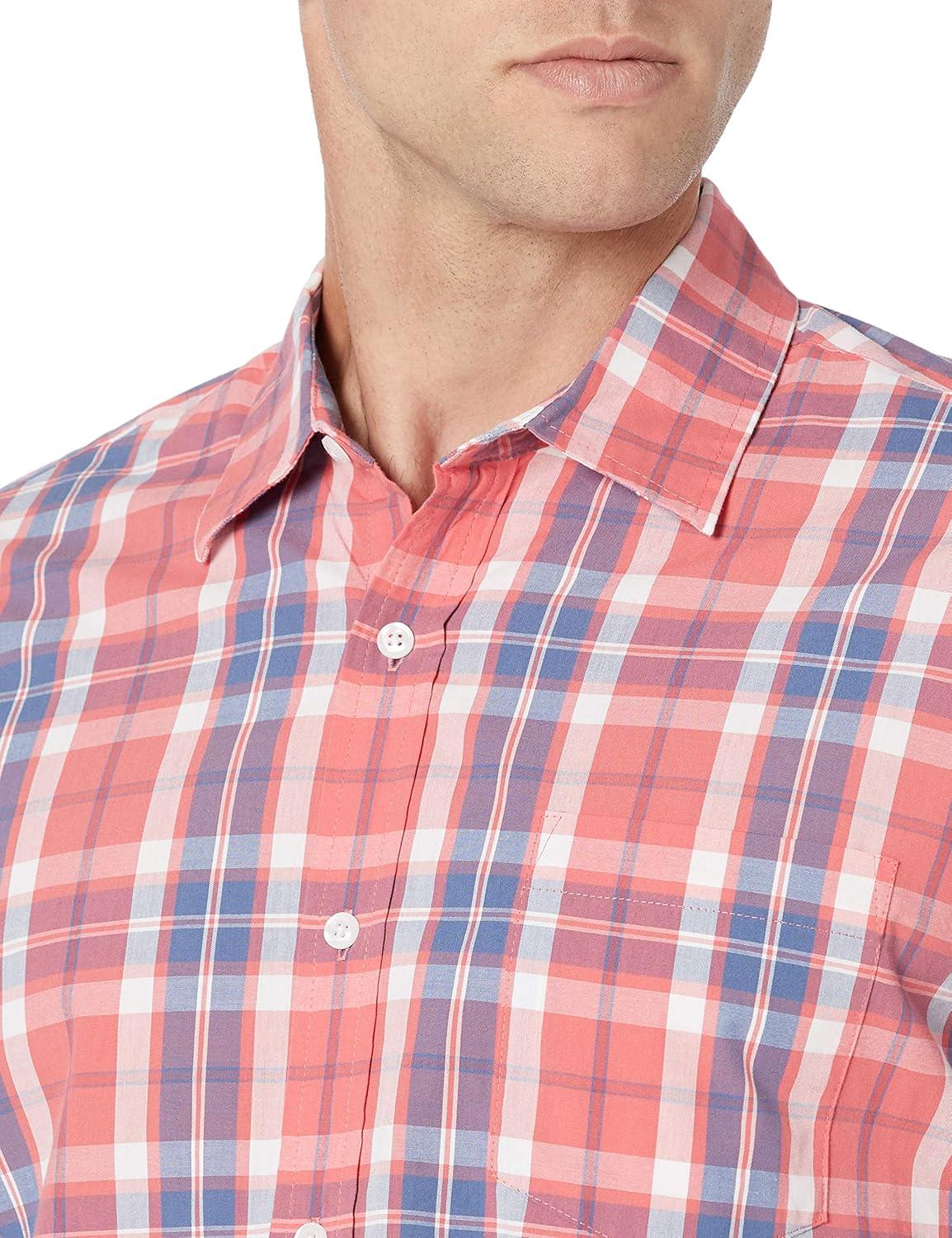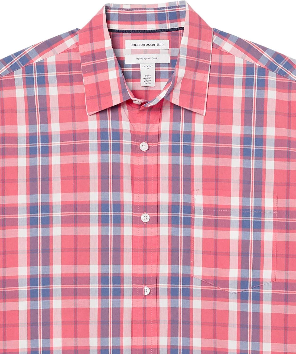 Amazon Essentials Men’s Regular-Fit Short-Sleeve Poplin Shirt(Washed Red Windowpane)