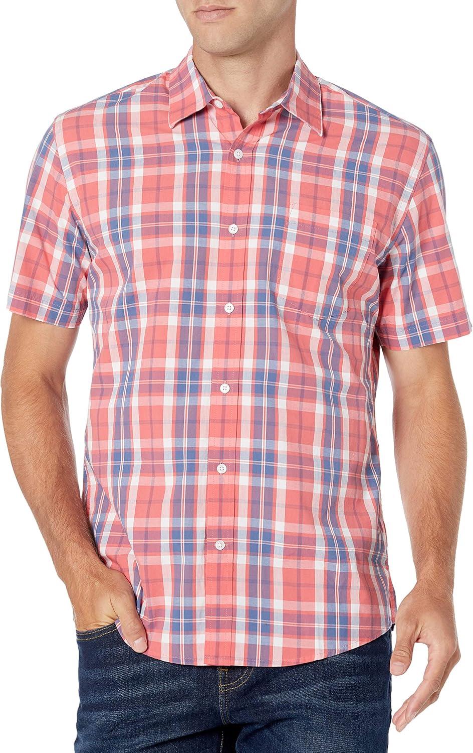 Amazon Essentials Men’s Regular-Fit Short-Sleeve Poplin Shirt(Washed Red Roses)