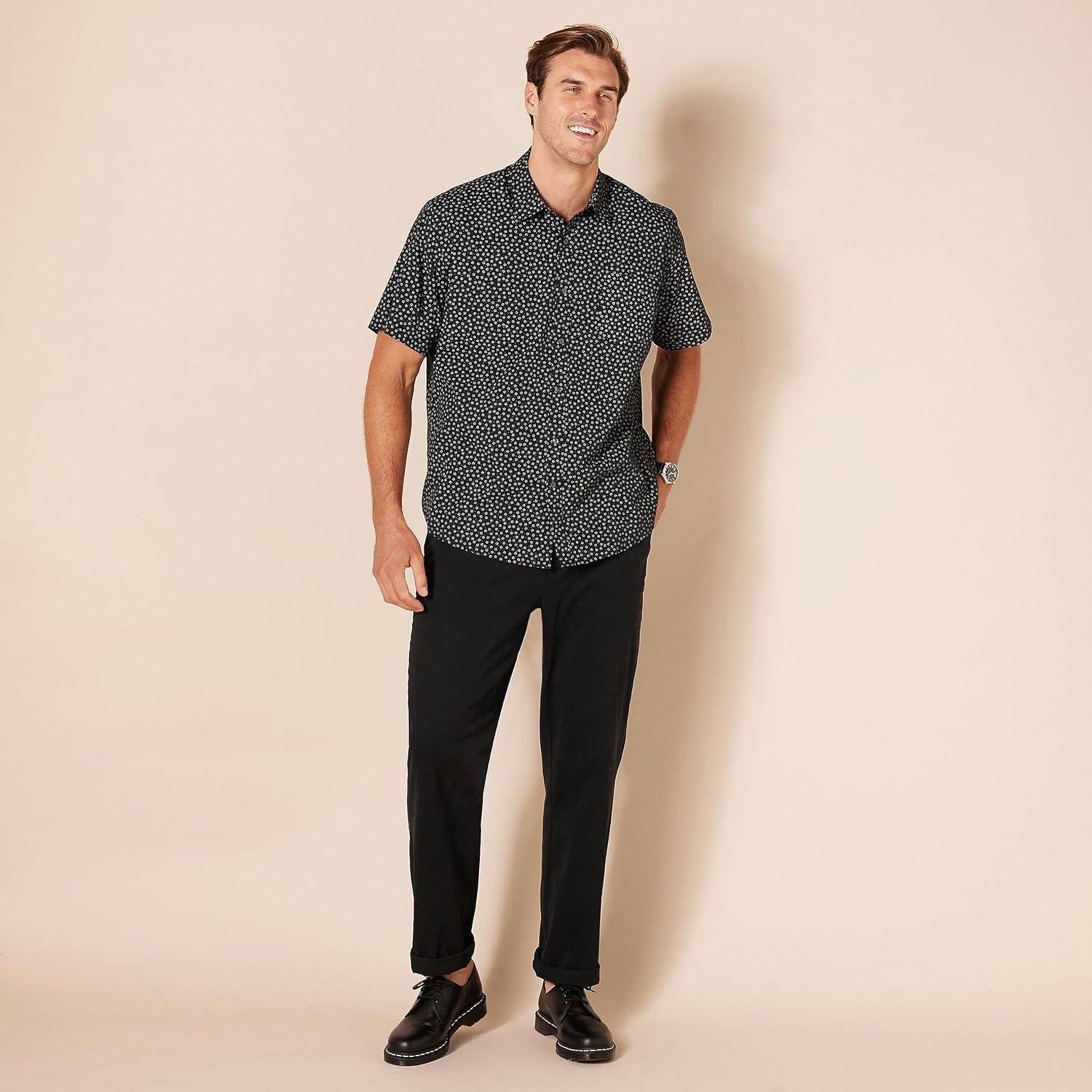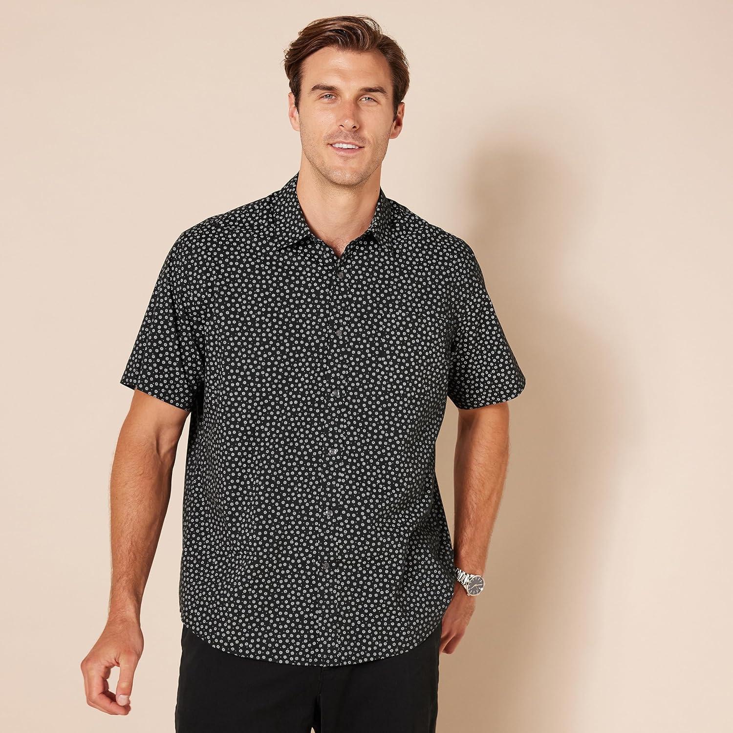 Amazon Essentials Men's Regular-Fit Short-Sleeve Print Shirt(Black Floral)