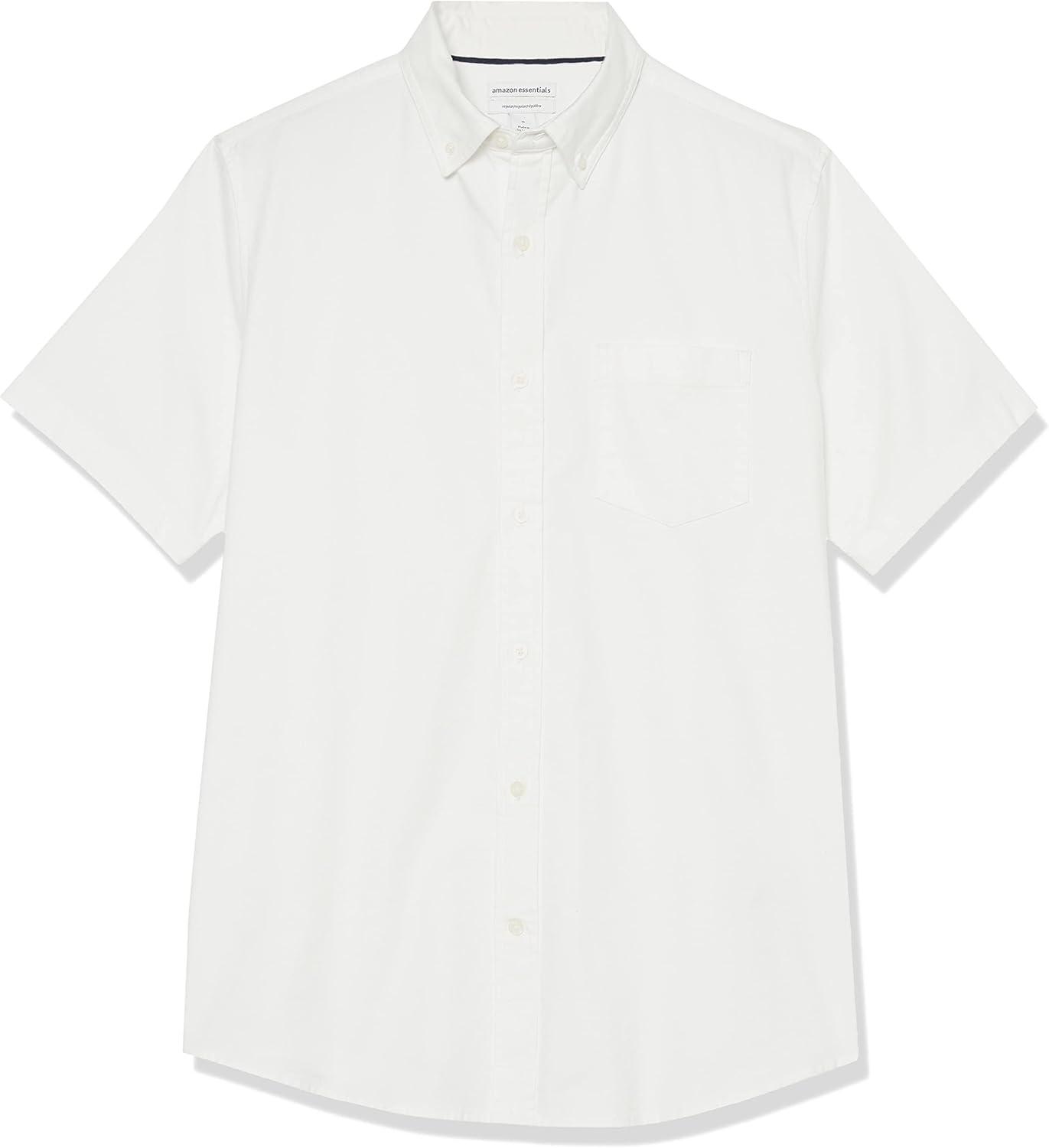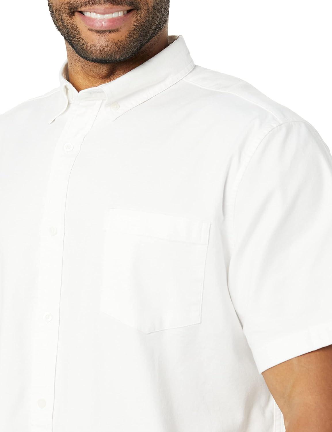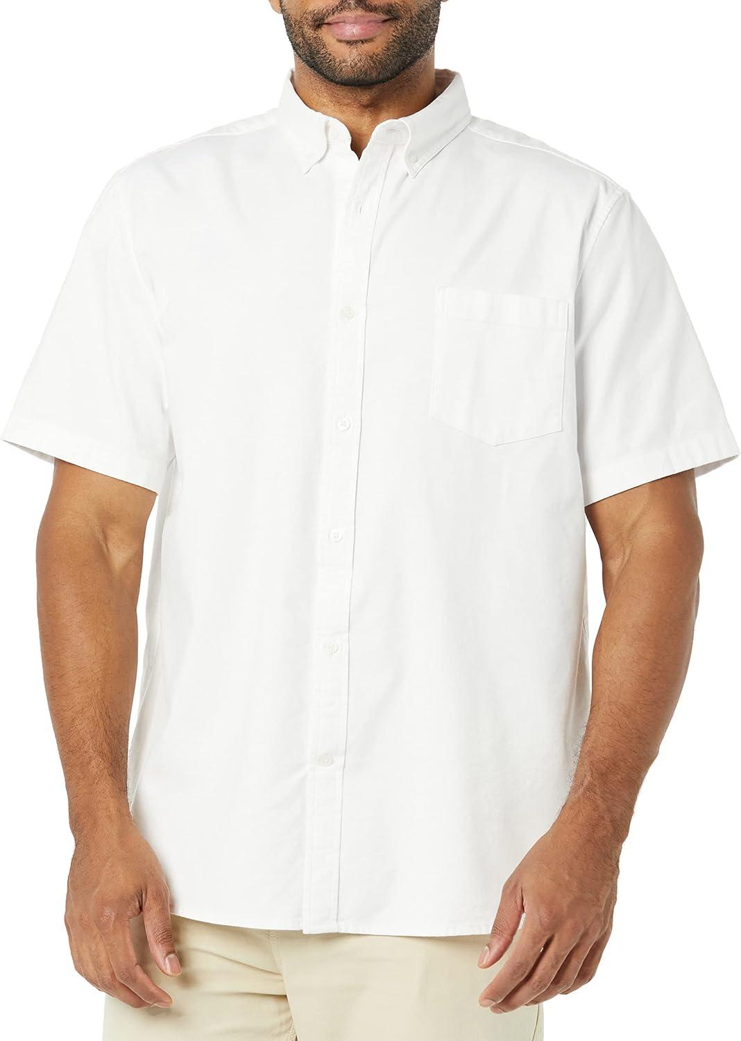Amazon Essentials Men’s Regular-Fit Short Sleeve Stretch Oxford Shirt with Pocket(White)