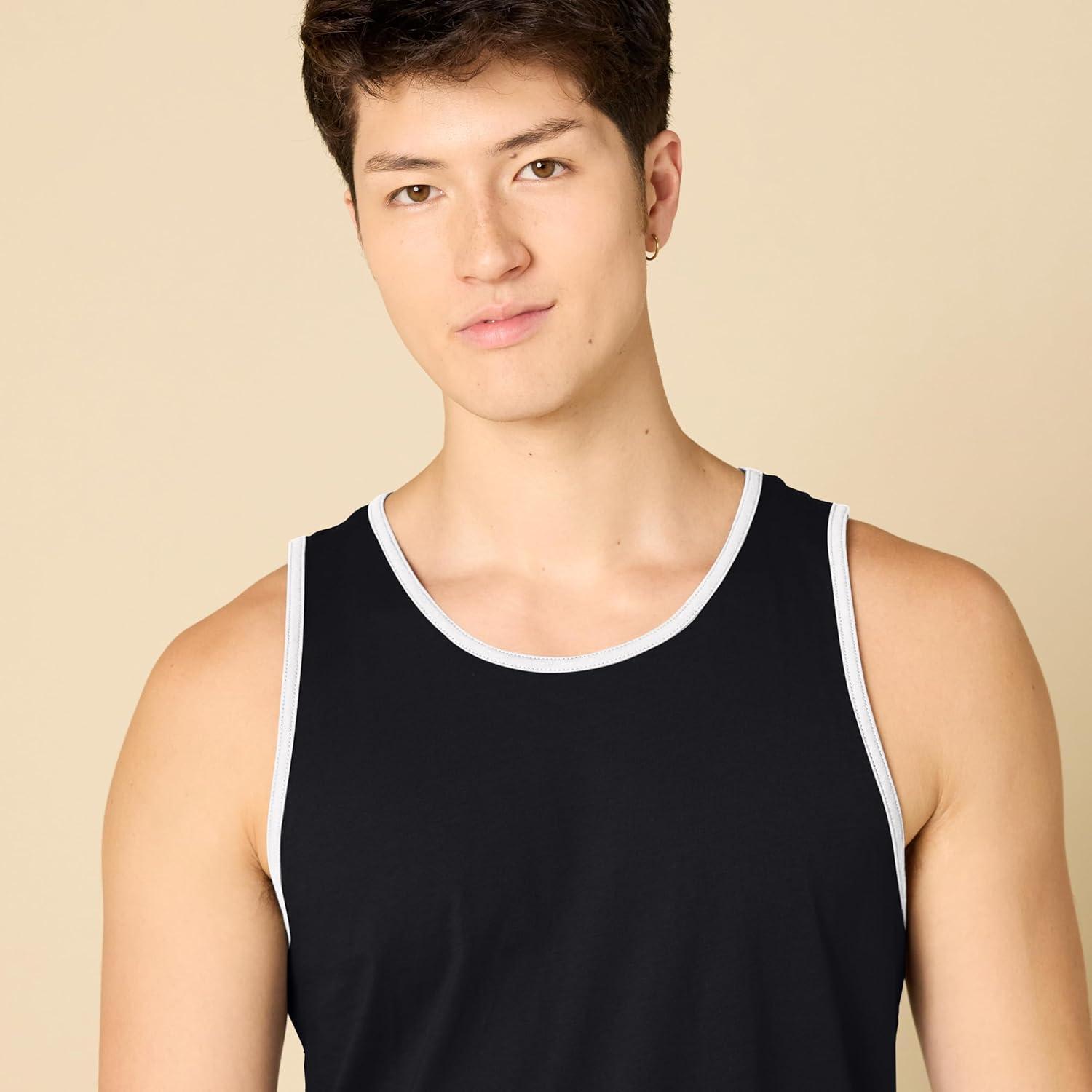 Amazon Essentials Men’s Regular-Fit Tank Top(Black/White)