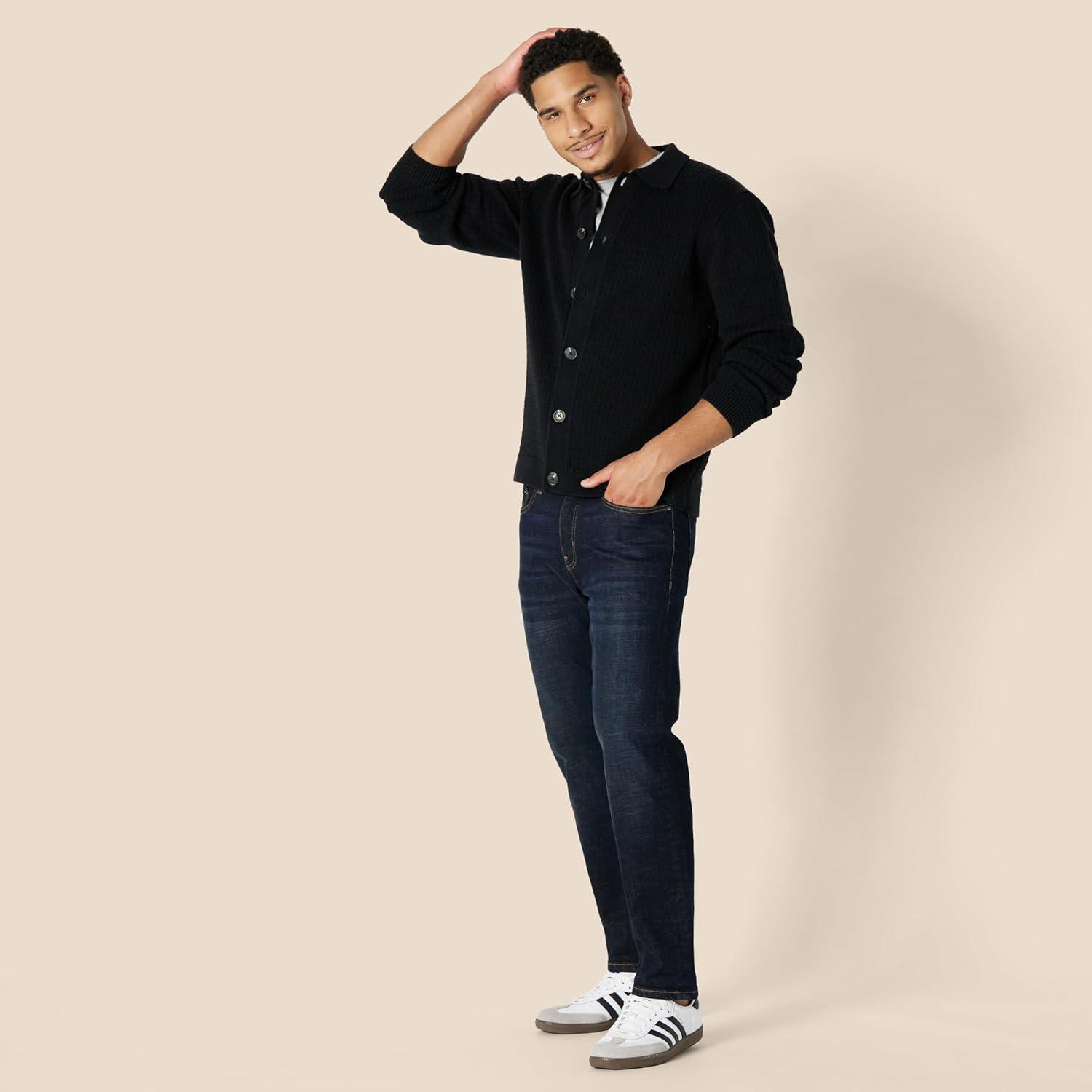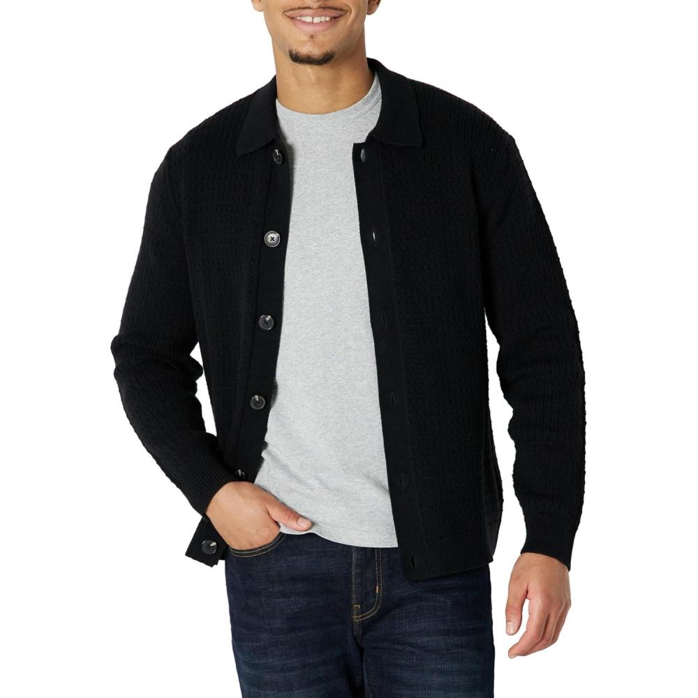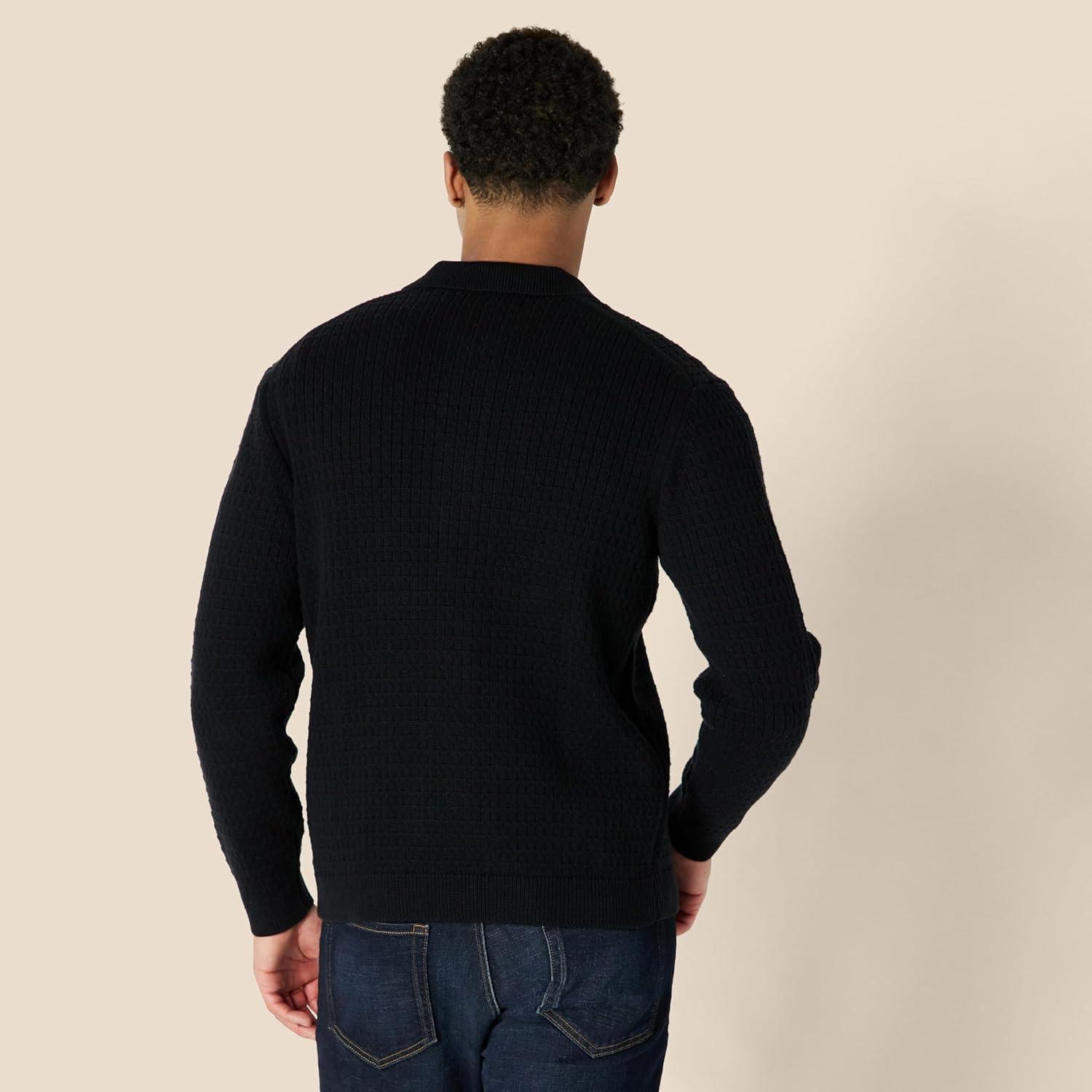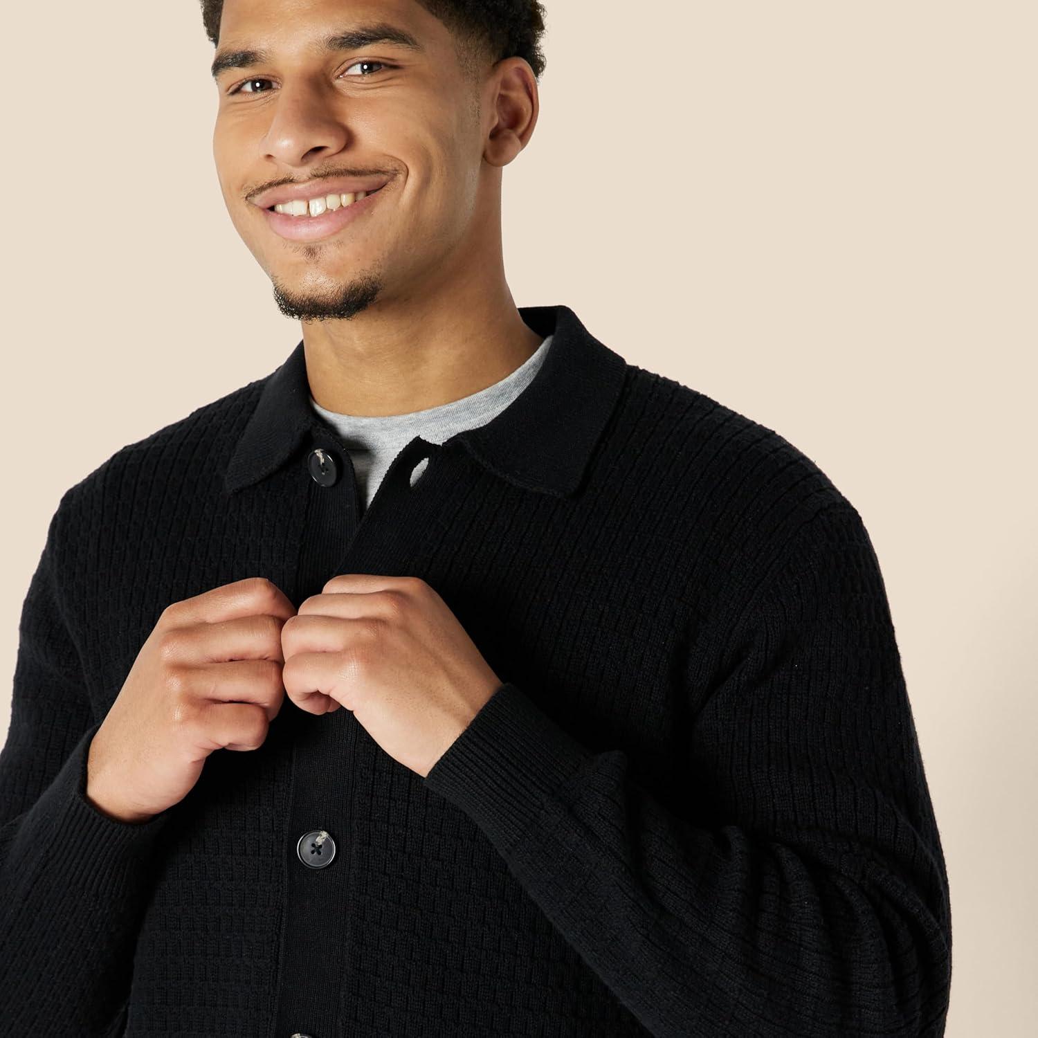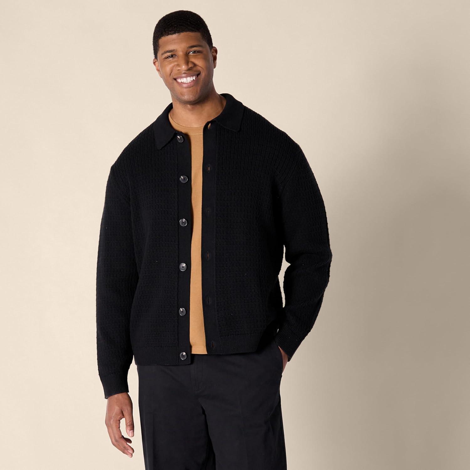 Amazon Essentials Men’s Relaxed-Fit Collared Cardigan Sweater(Black)