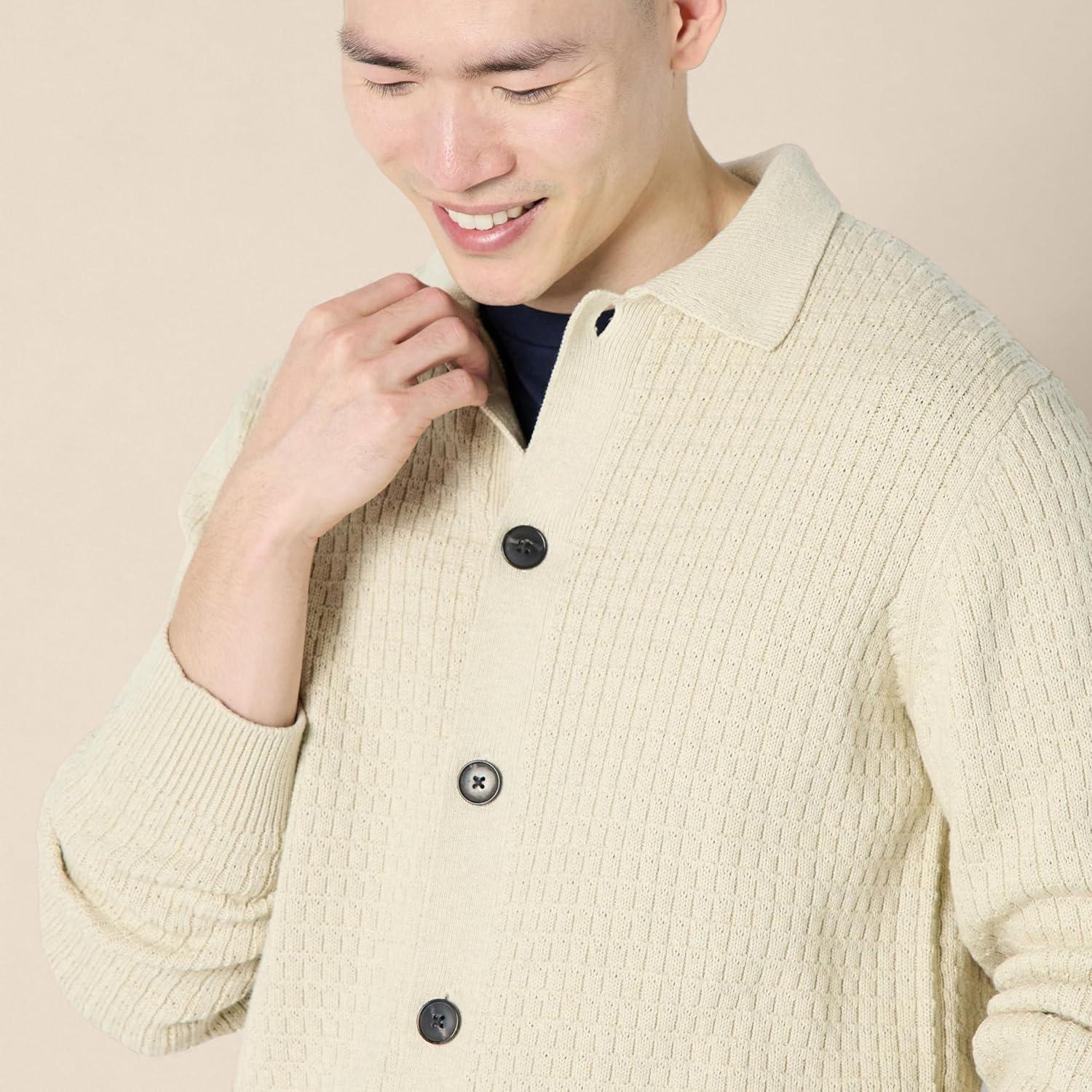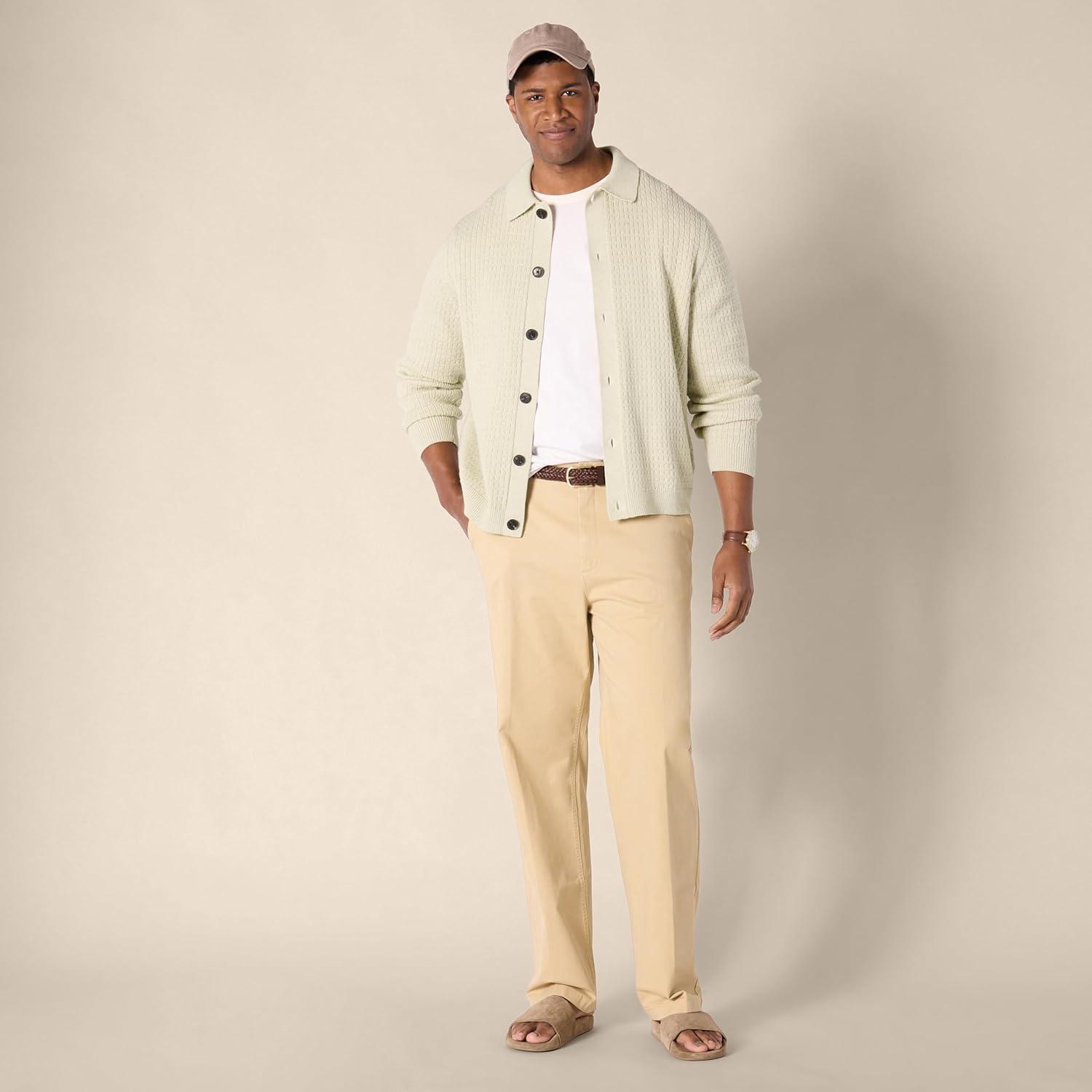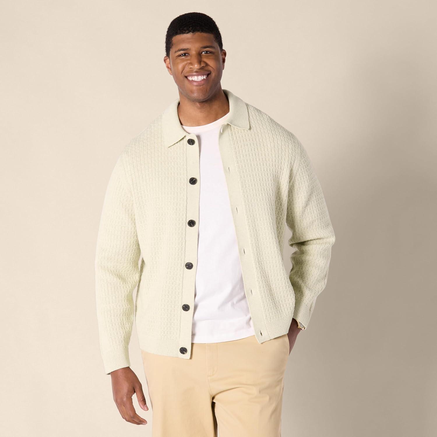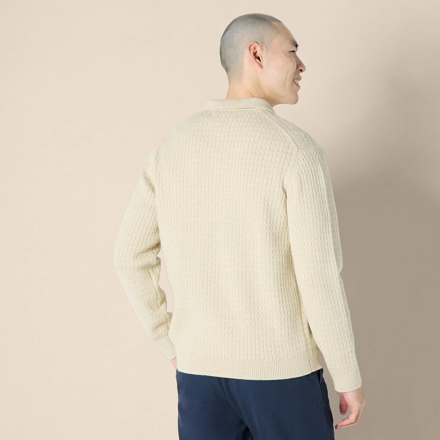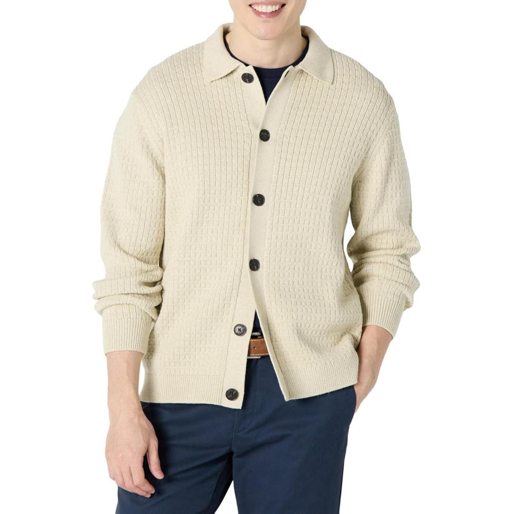 Amazon Essentials Men’s Relaxed-Fit Collared Cardigan Sweater(Sand Heather)