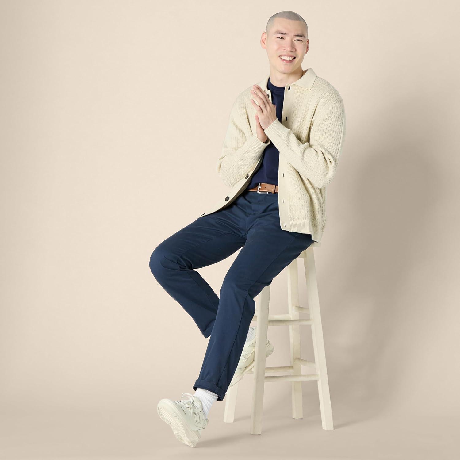 Amazon Essentials Men’s Relaxed-Fit Collared Cardigan Sweater(Navy)