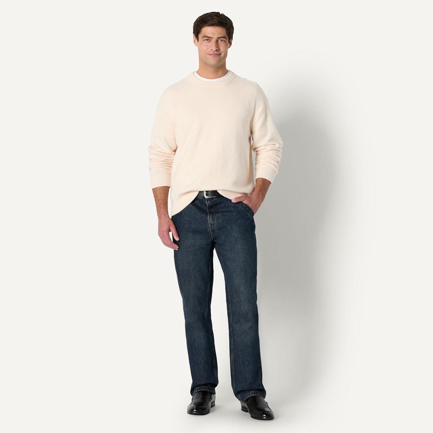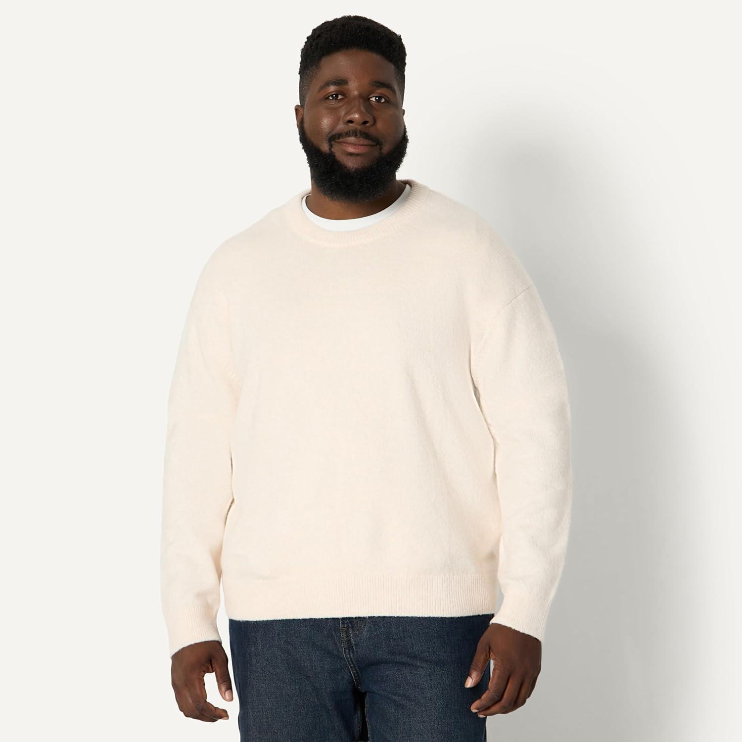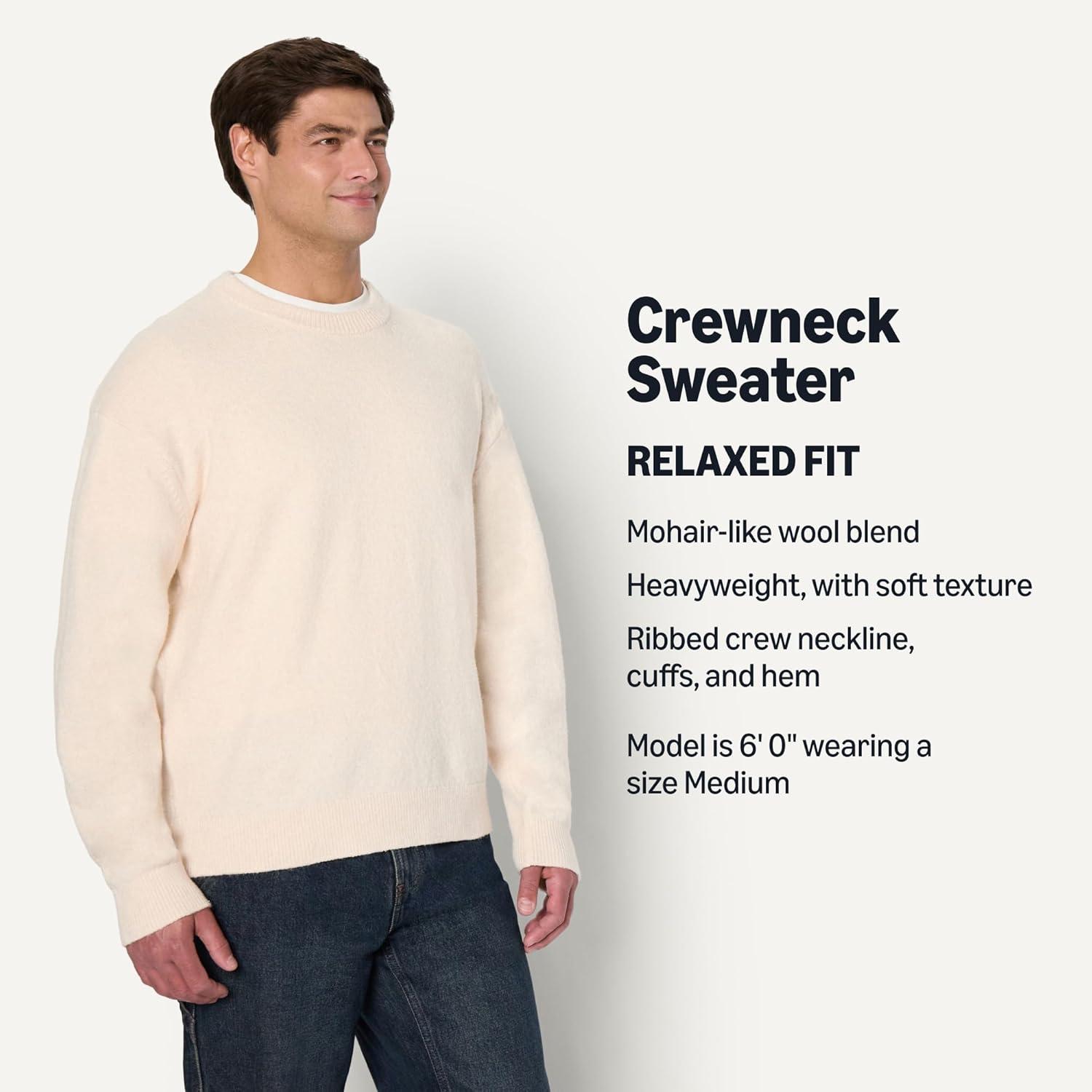 Amazon Essentials Mens Relaxed-Fit Cotton Blend Textured Crewneck Pullover Sweater(Oatmeal Heather)