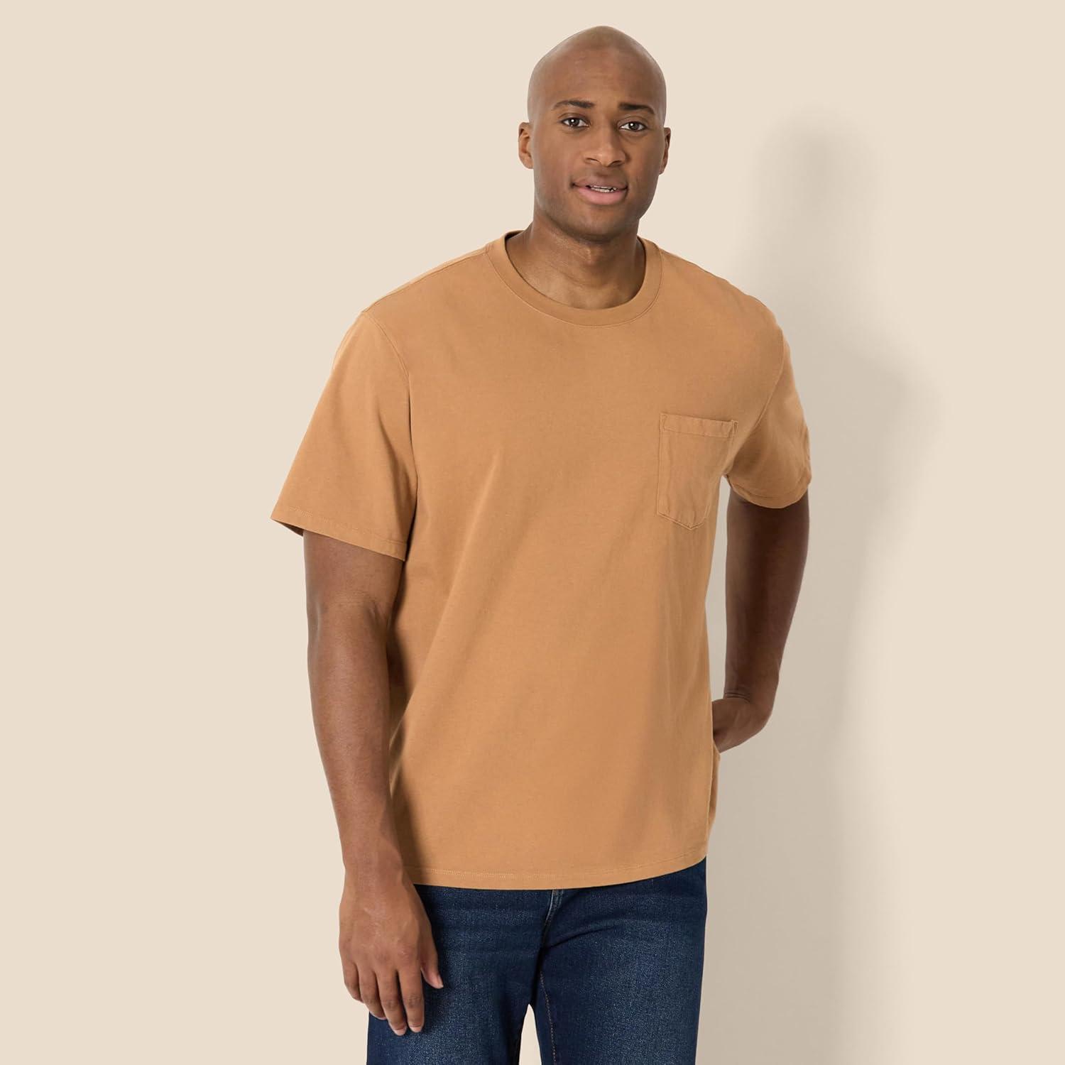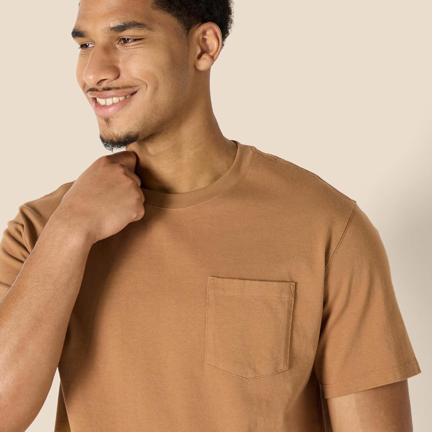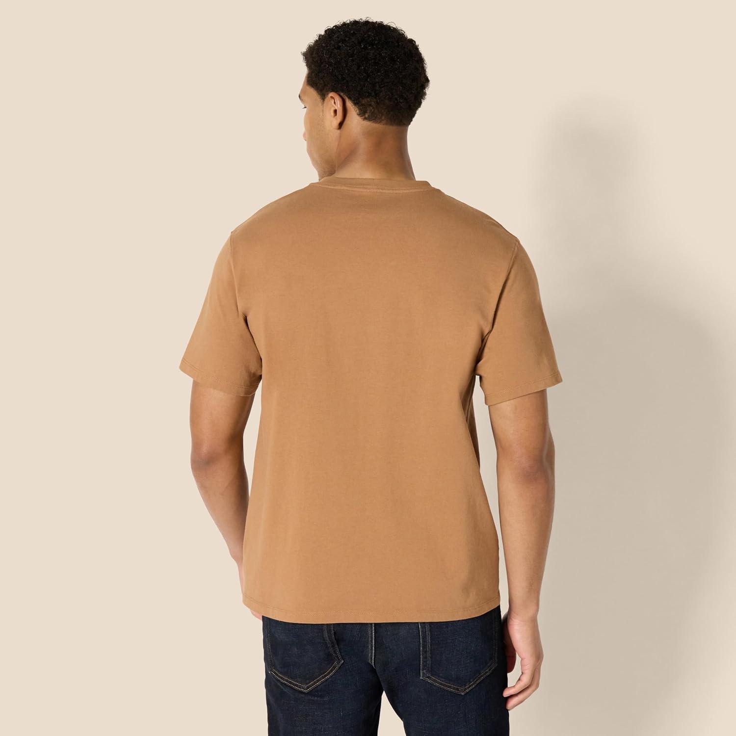 Amazon Essentials Men’s Relaxed-Fit Heavyweight Cotton Pocket T-Shirt(Dark Tan)