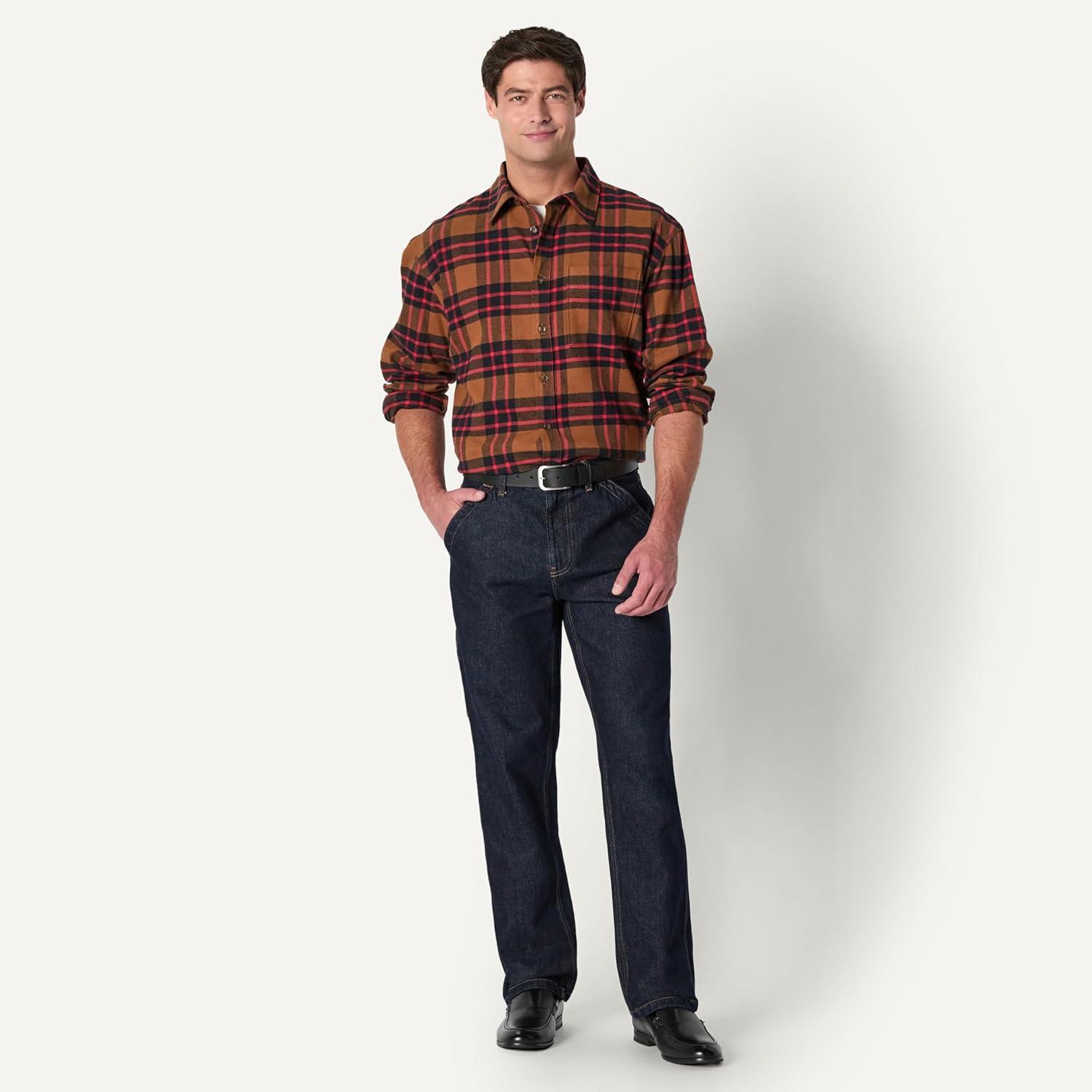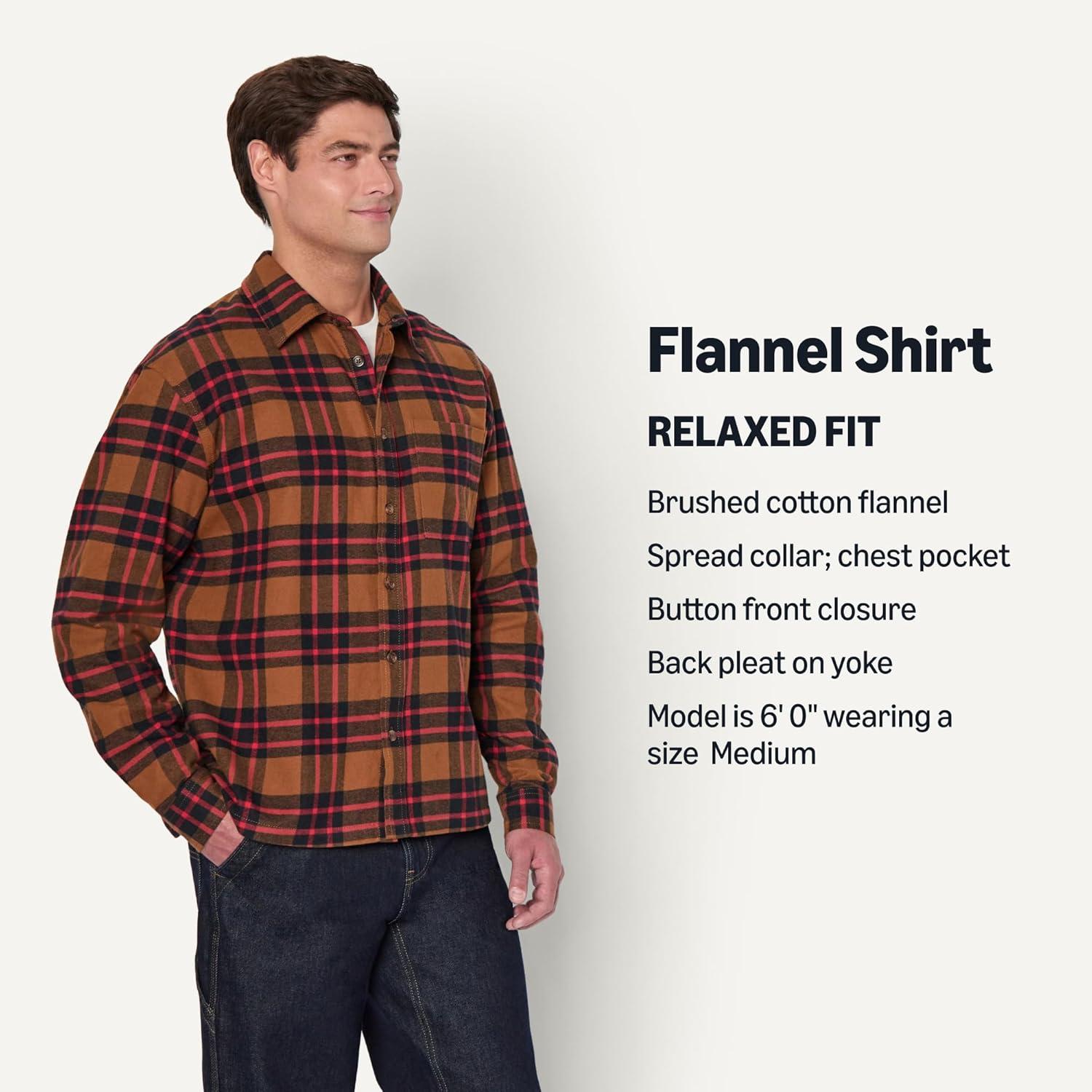 Amazon Essentials Men’s Relaxed-Fit Long-Sleeve Flannel Shirt(Dark Chestnut Brown Red Simple Plaid)