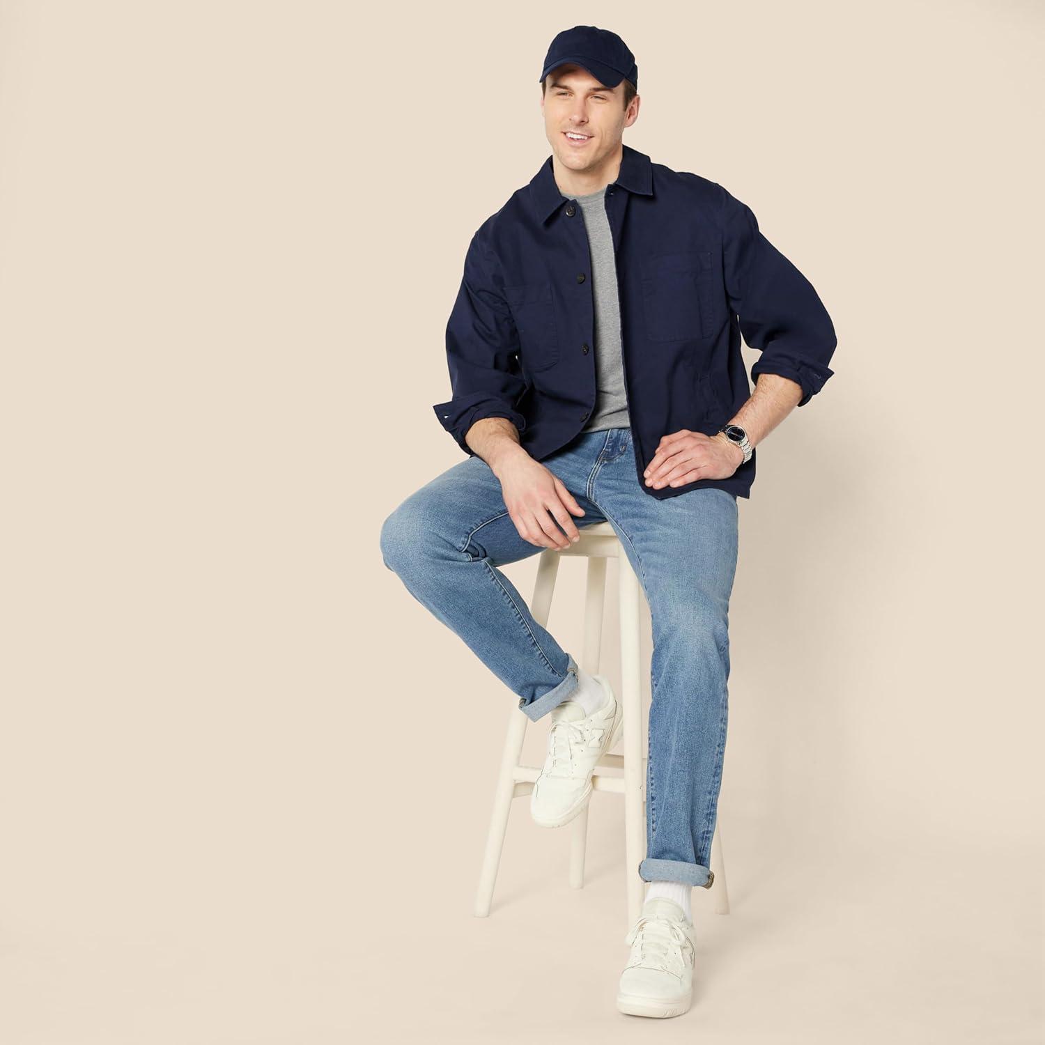 Amazon Essentials Mens Relaxed-Fit Stretch Cotton Utility Jacket(Navy)