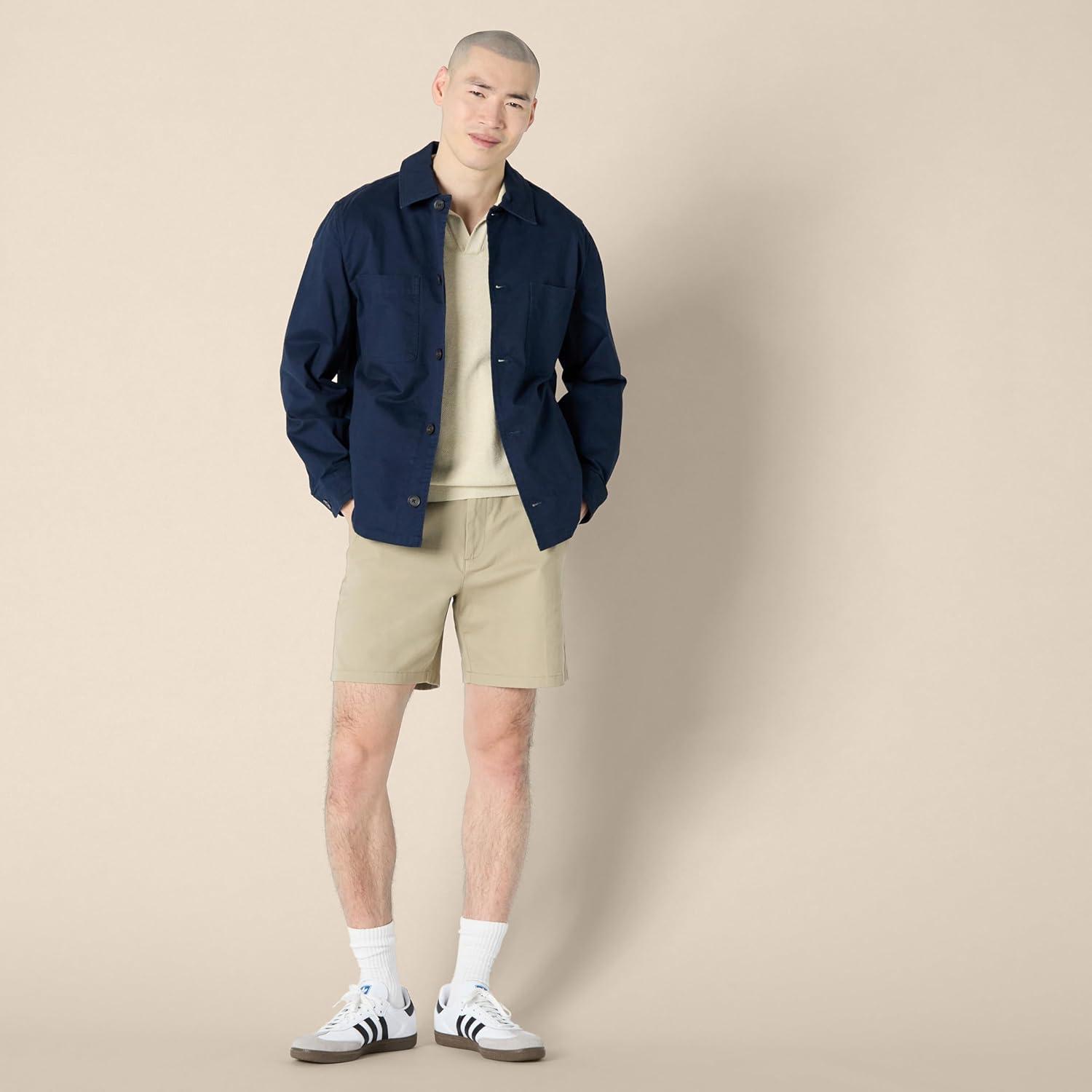 Amazon Essentials Mens Relaxed-Fit Stretch Cotton Utility Jacket(Stone)