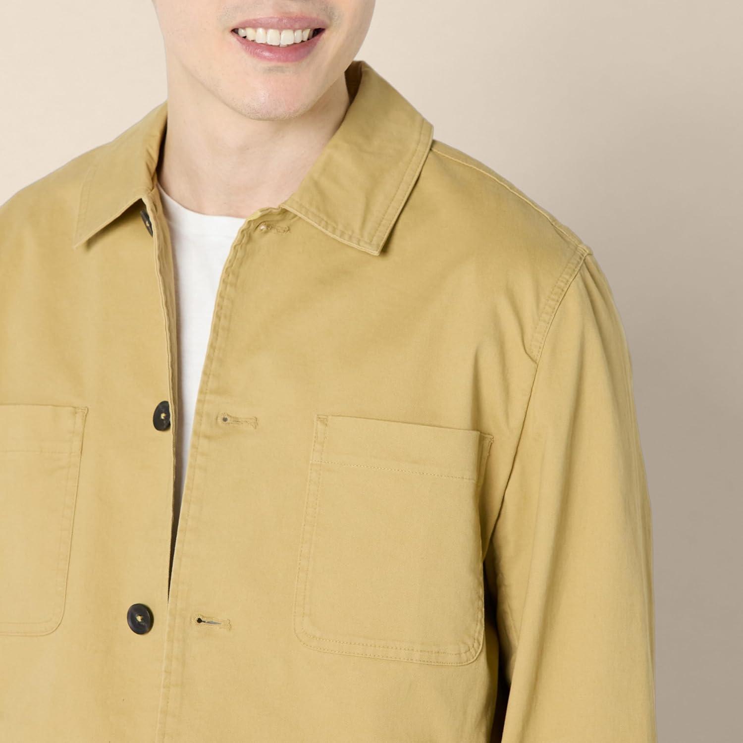 Amazon Essentials Mens Relaxed-Fit Stretch Cotton Utility Jacket(Tan)