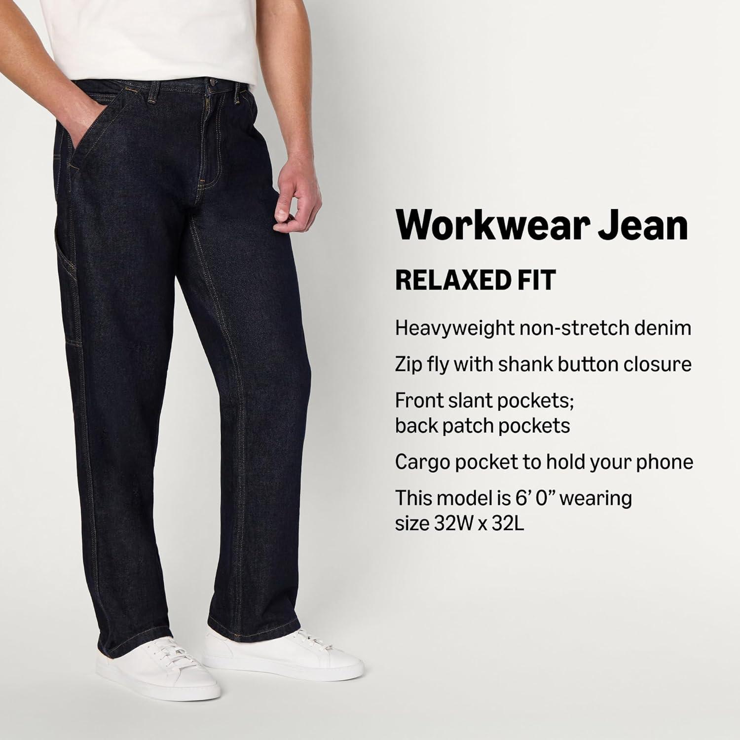 Amazon Essentials Men’s Rigid Relaxed-Fit Workwear Carpenter Jean(Rinse)