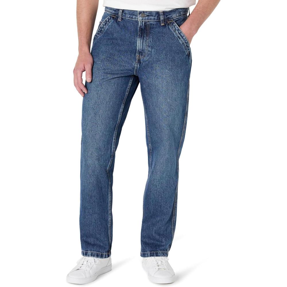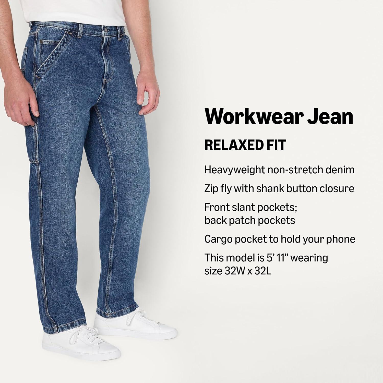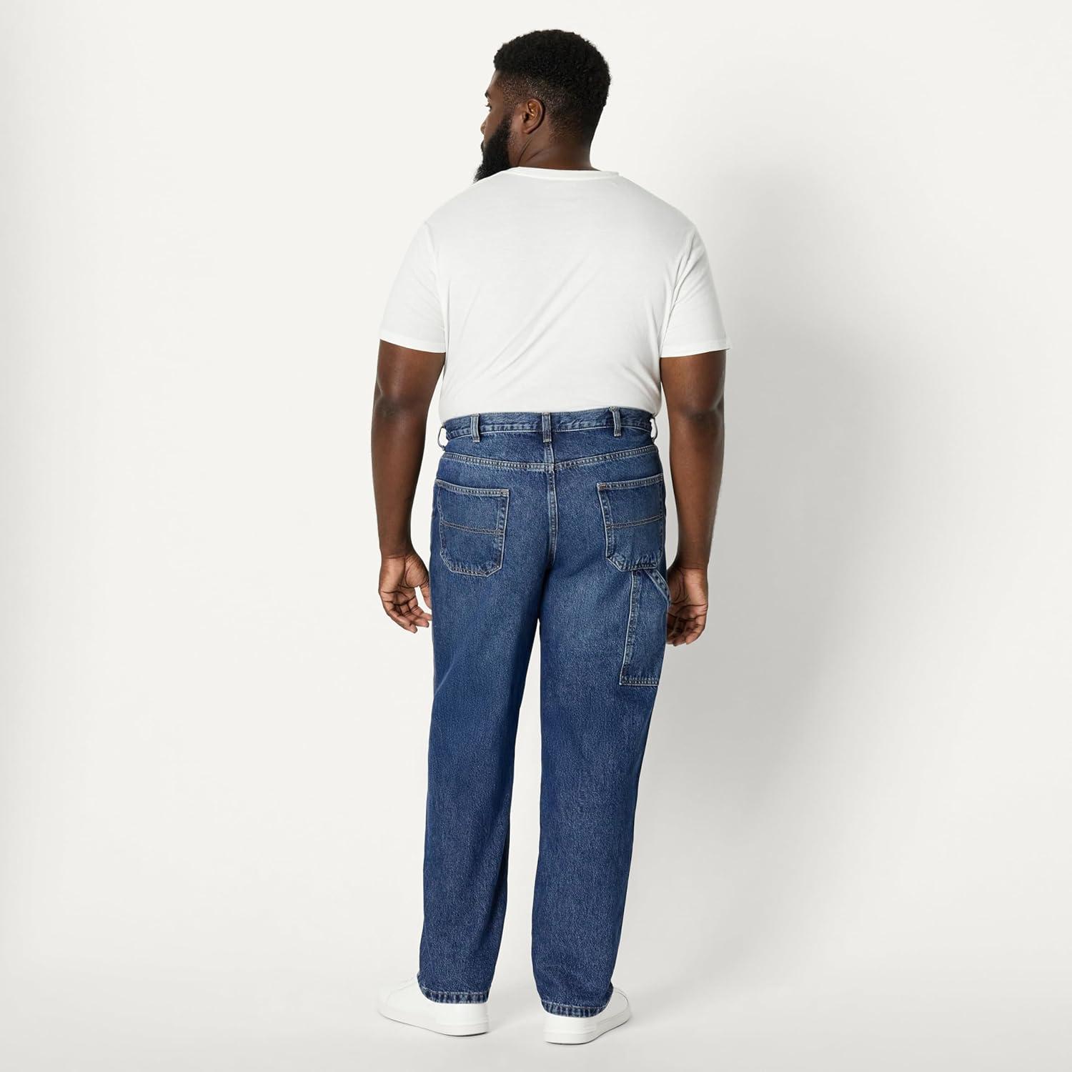 Amazon Essentials Men’s Rigid Relaxed-Fit Workwear Carpenter Jean(Tinted Dark Wash)