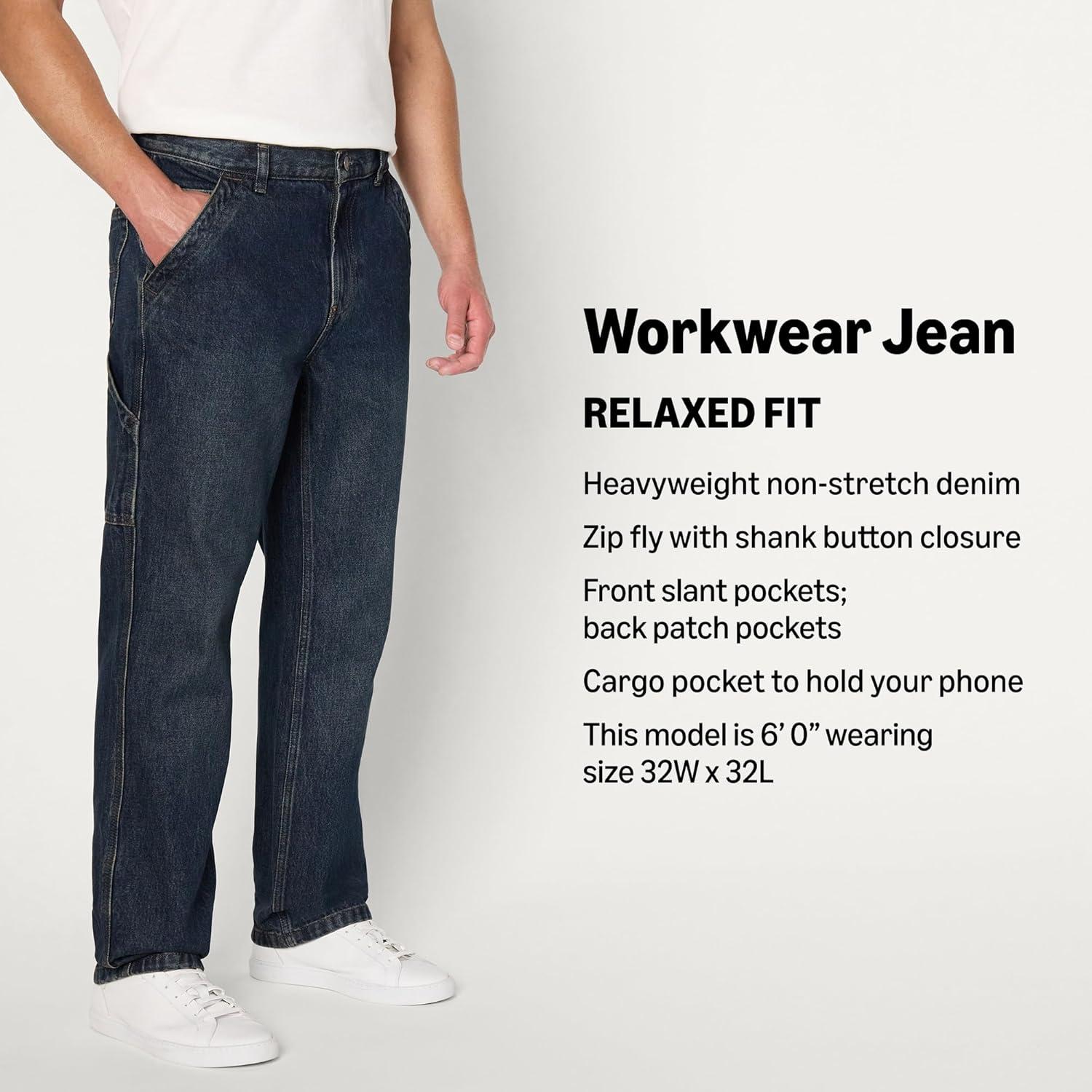 Get up to 50% off on Amazon Essentials Men’s Rigid Relaxed-Fit Workwear Carpenter Jean(Tinted Dark Wash) styles during our spring sale event.
