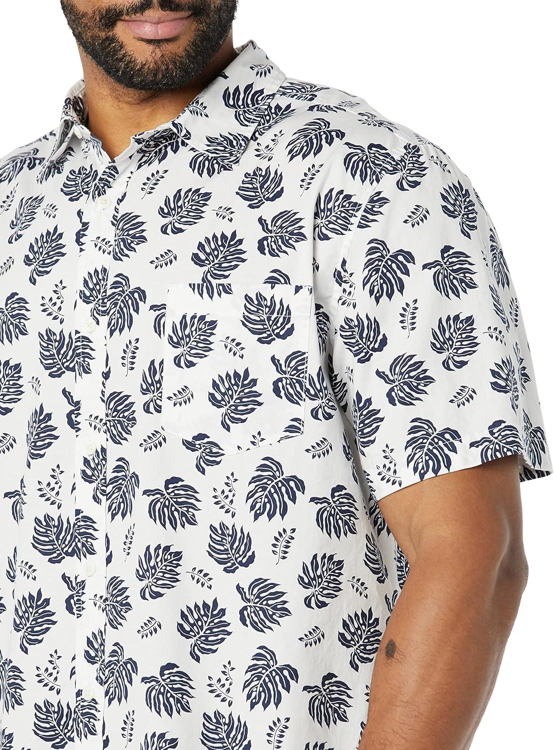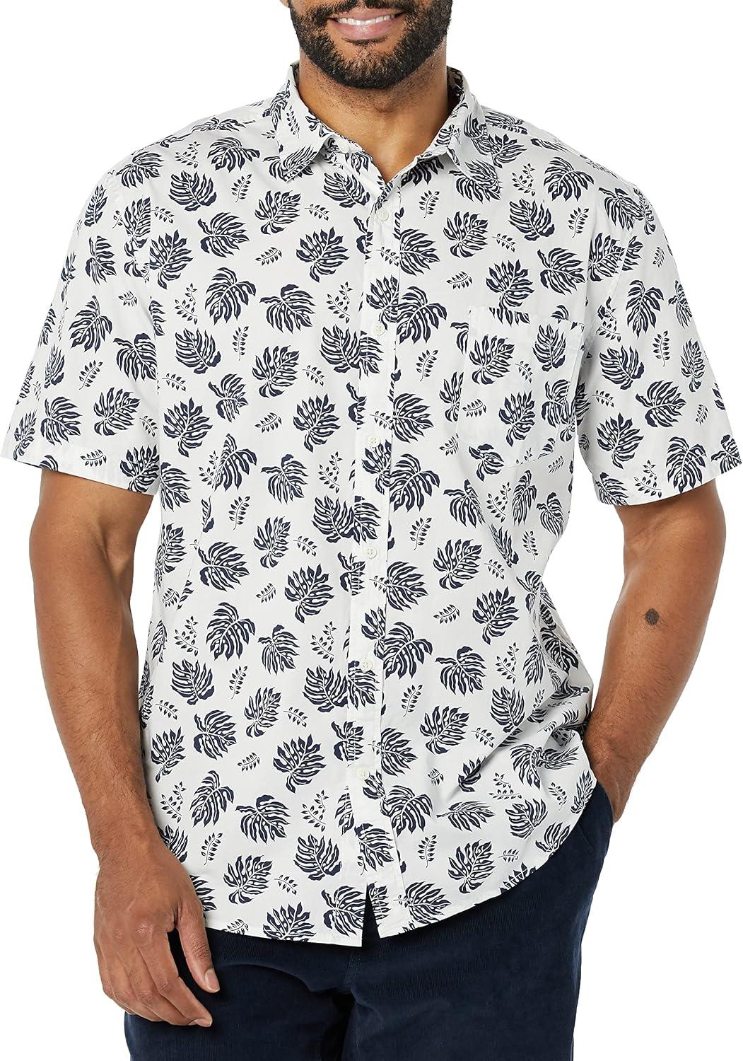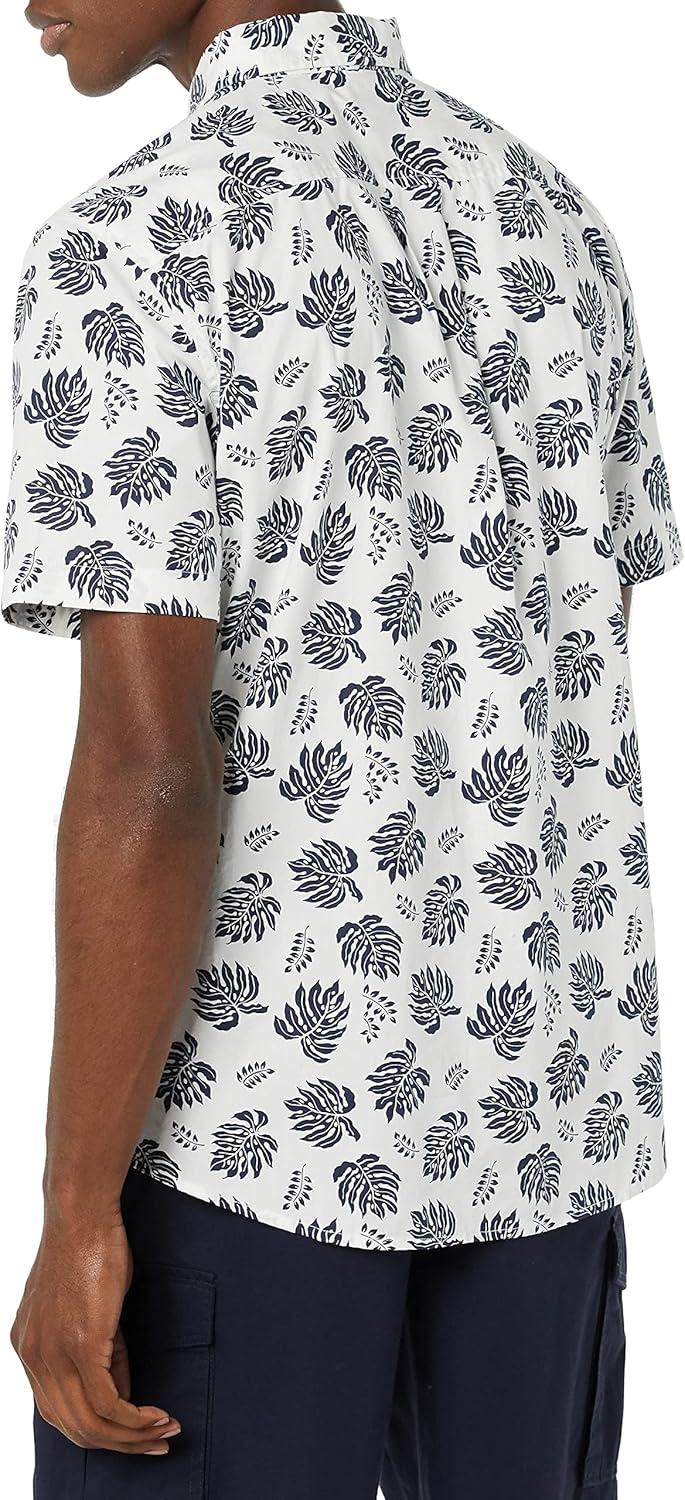 Amazon Essentials mens Short-sleeve Regular-fit Stretch Poplin Shirt(Navy White Palm Leaf)