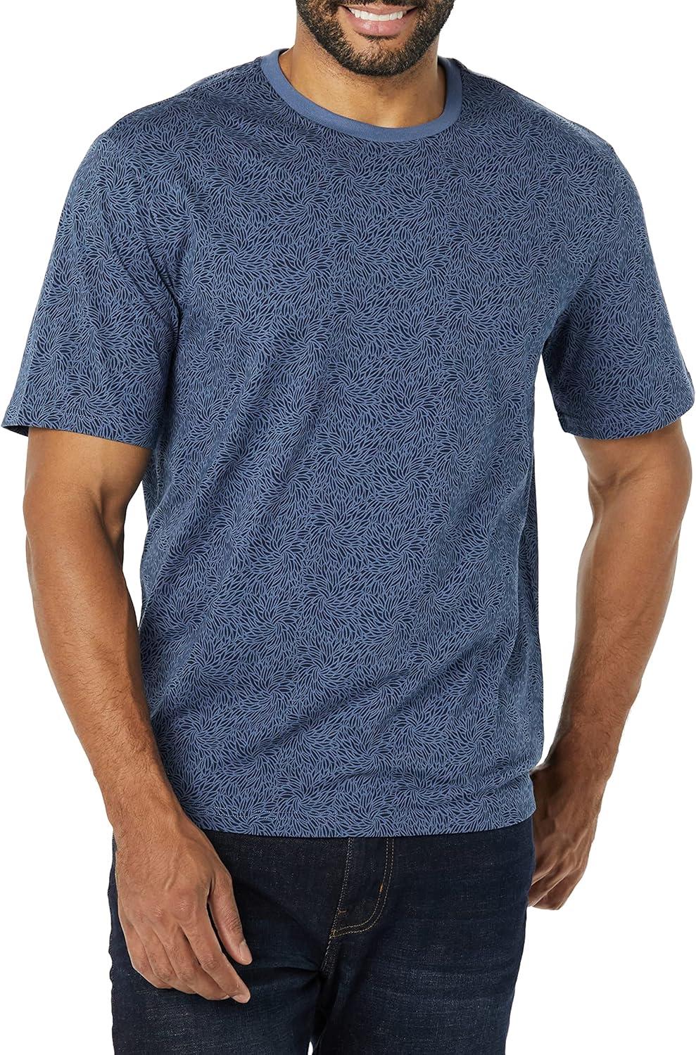 Amazon Essentials Men's Short Sleeve T-Shirts, Slim-Fit, Crewneck, Pack of 2(Navy Floral Print/Washed Blue)