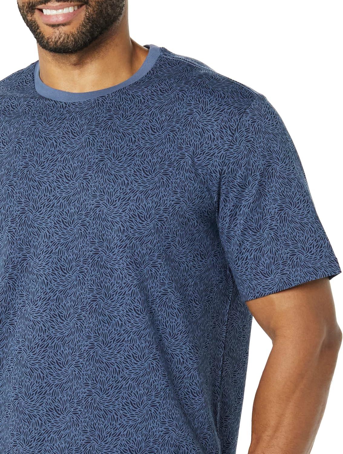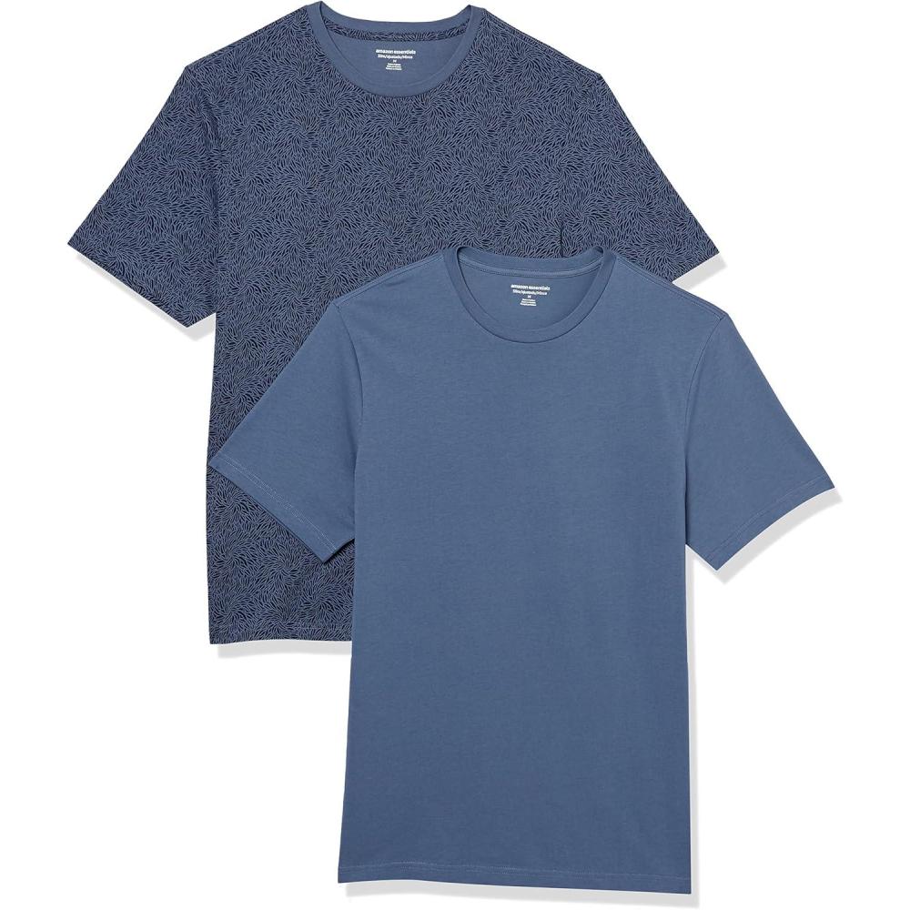 Amazon Essentials Men’s Short Sleeve T-Shirts, Slim-Fit, Crewneck, Pack of 2(Navy Floral Print/Washed Blue)