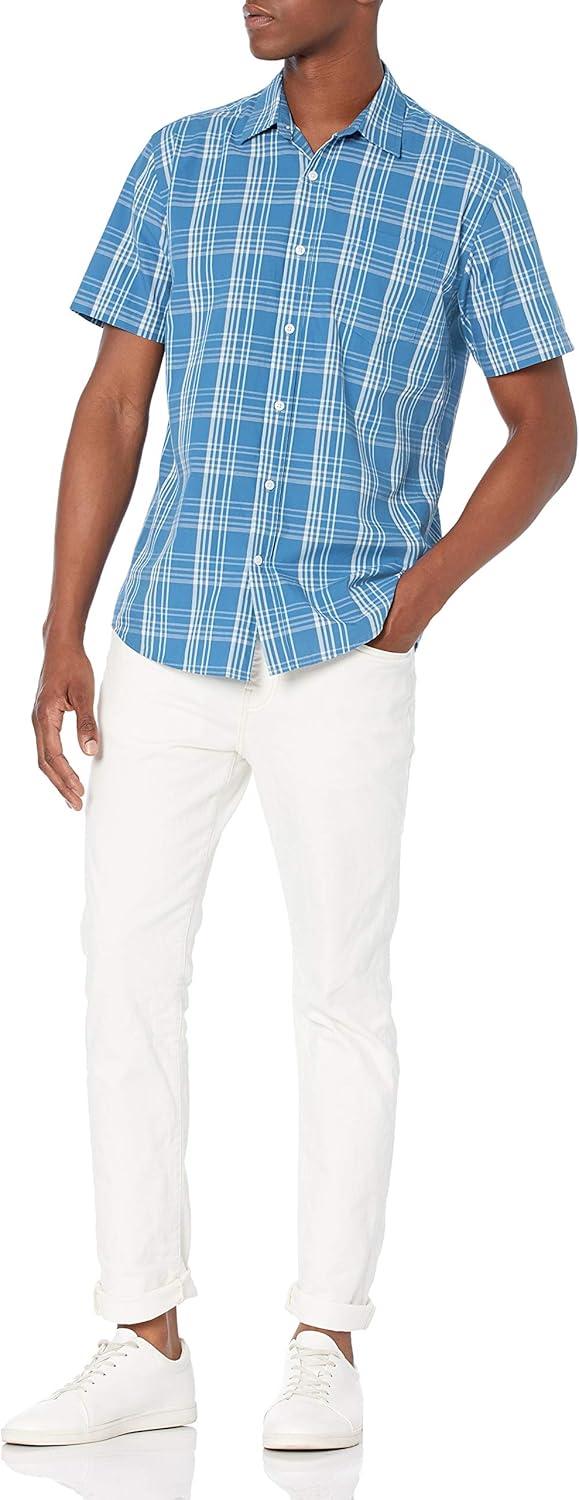 Amazon Essentials Men’s Short-Sleeve V-Neck T-Shirts, Pack of 2(Aqua Blue Gingham)