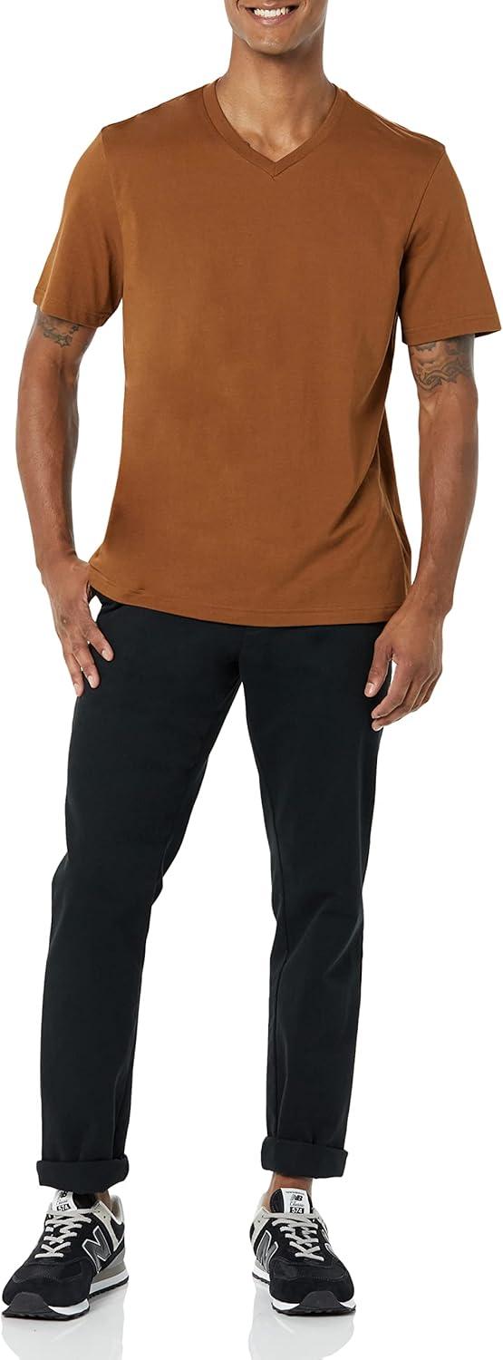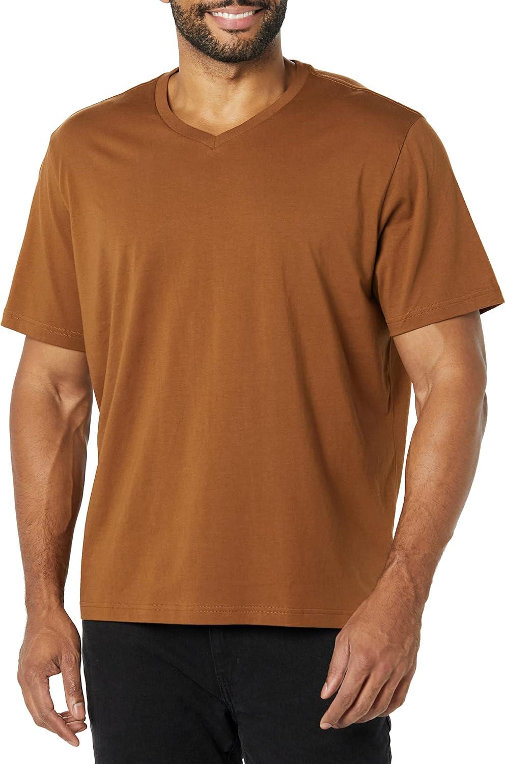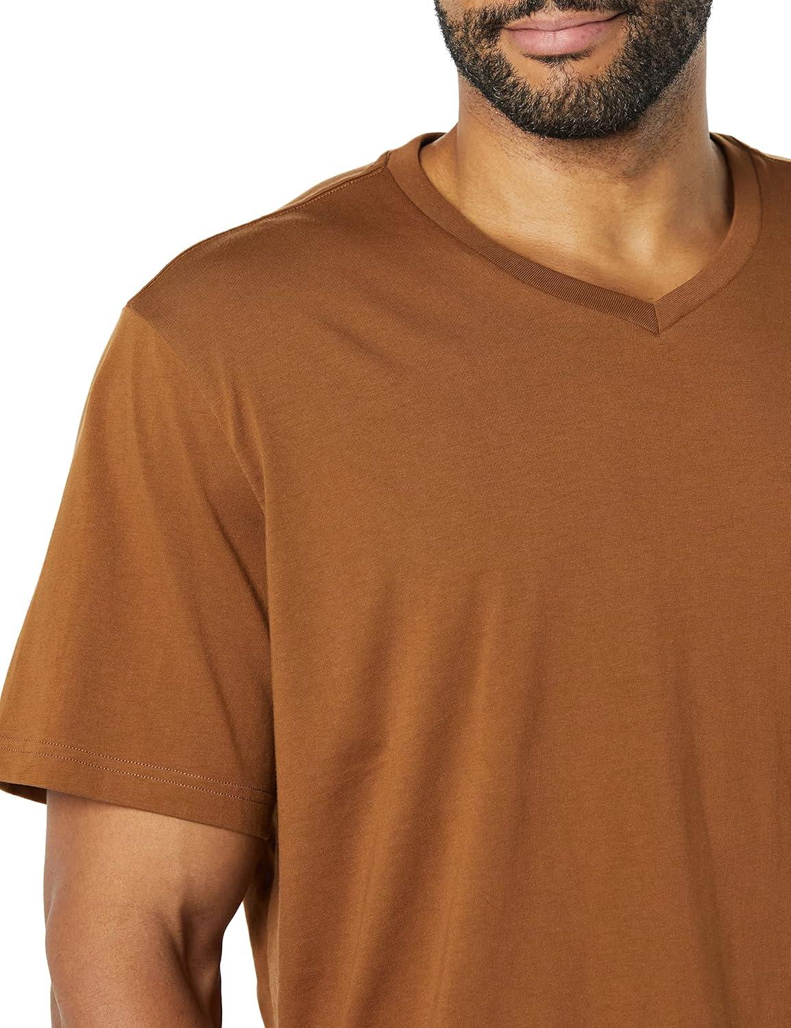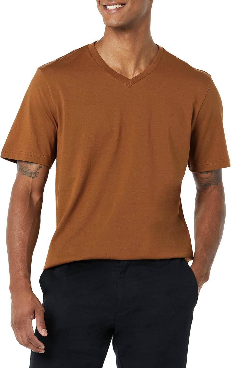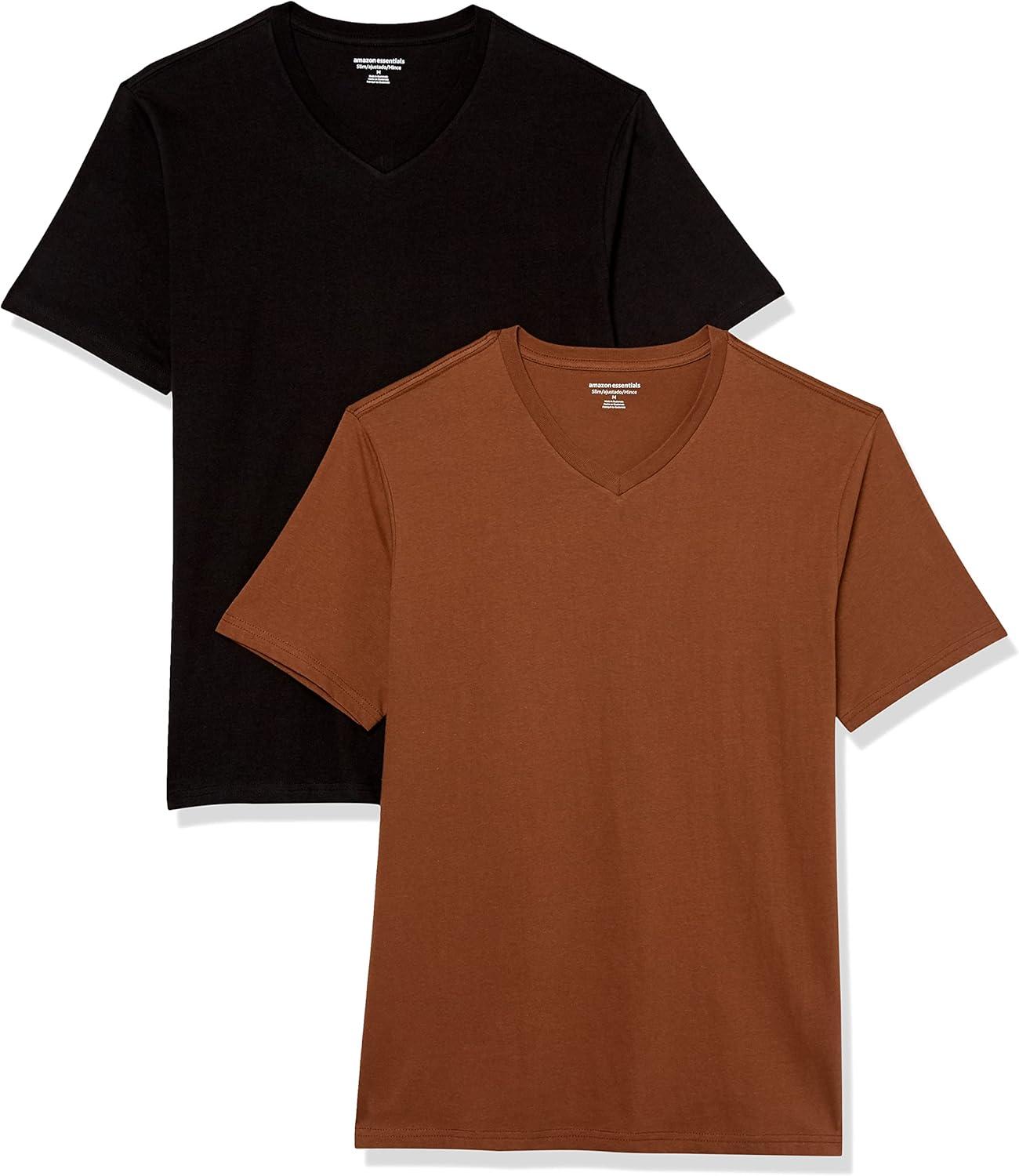 Amazon Essentials Men’s Short-Sleeve V-Neck T-Shirts, Pack of 2(Black/Brown)