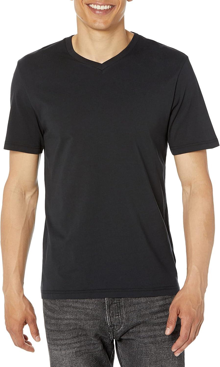 Amazon Essentials Men’s Short-Sleeve V-Neck T-Shirts, Pack of 2(Black/Navy)