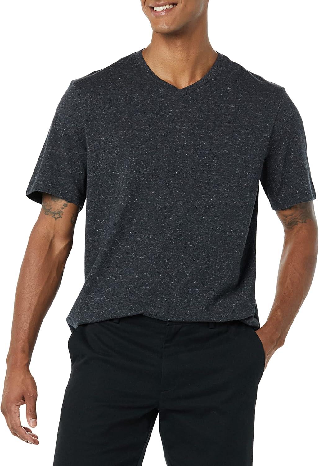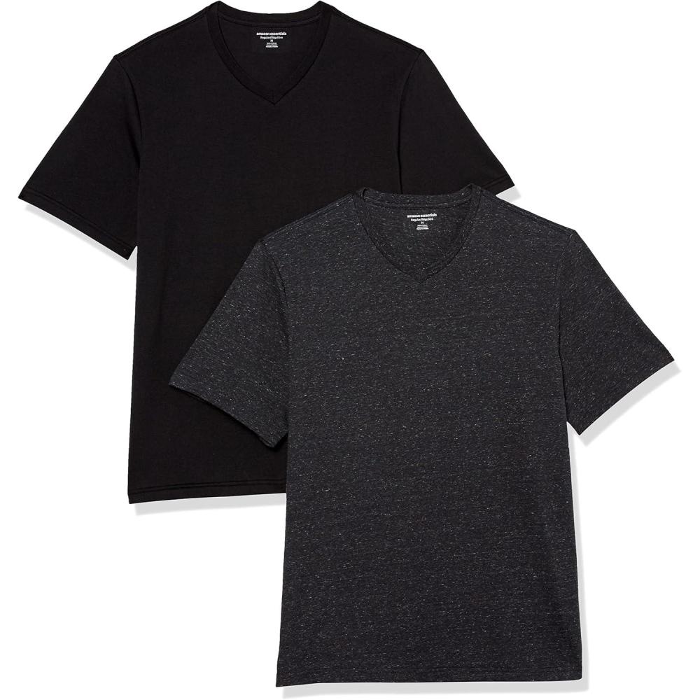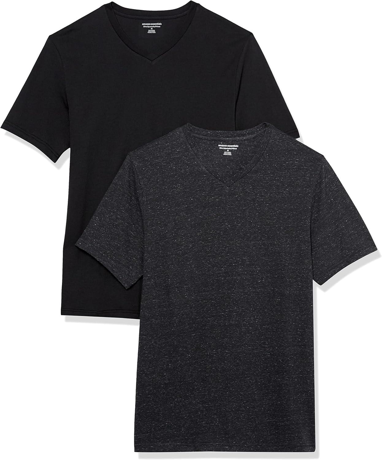 Amazon Essentials Men’s Short-Sleeve V-Neck T-Shirts, Pack of 2(Black/Charcoal Heather)
