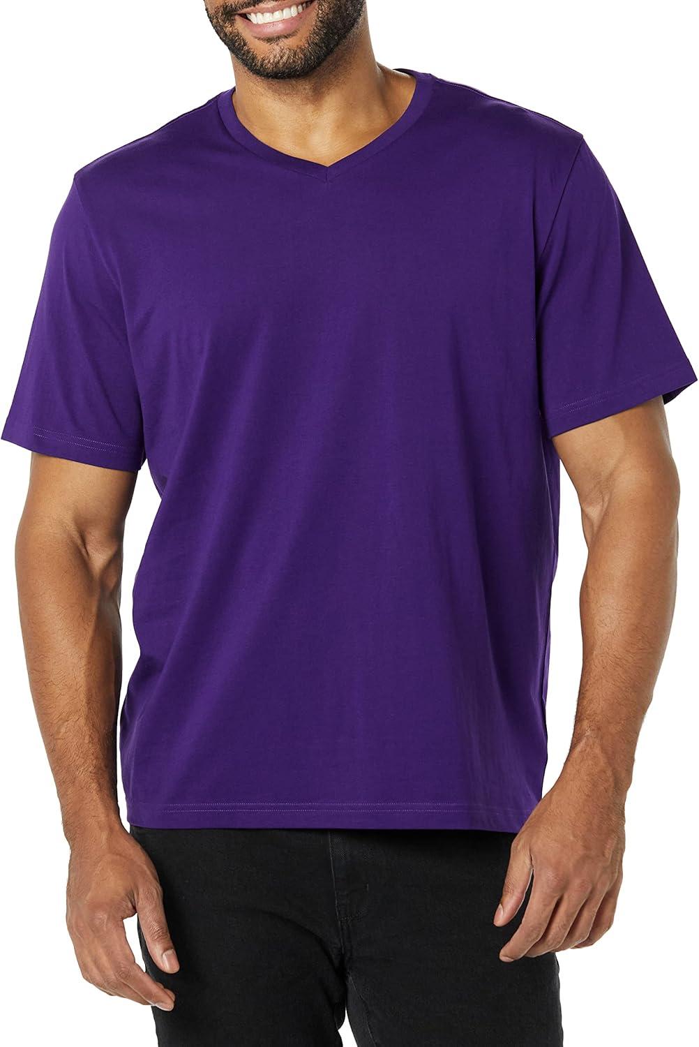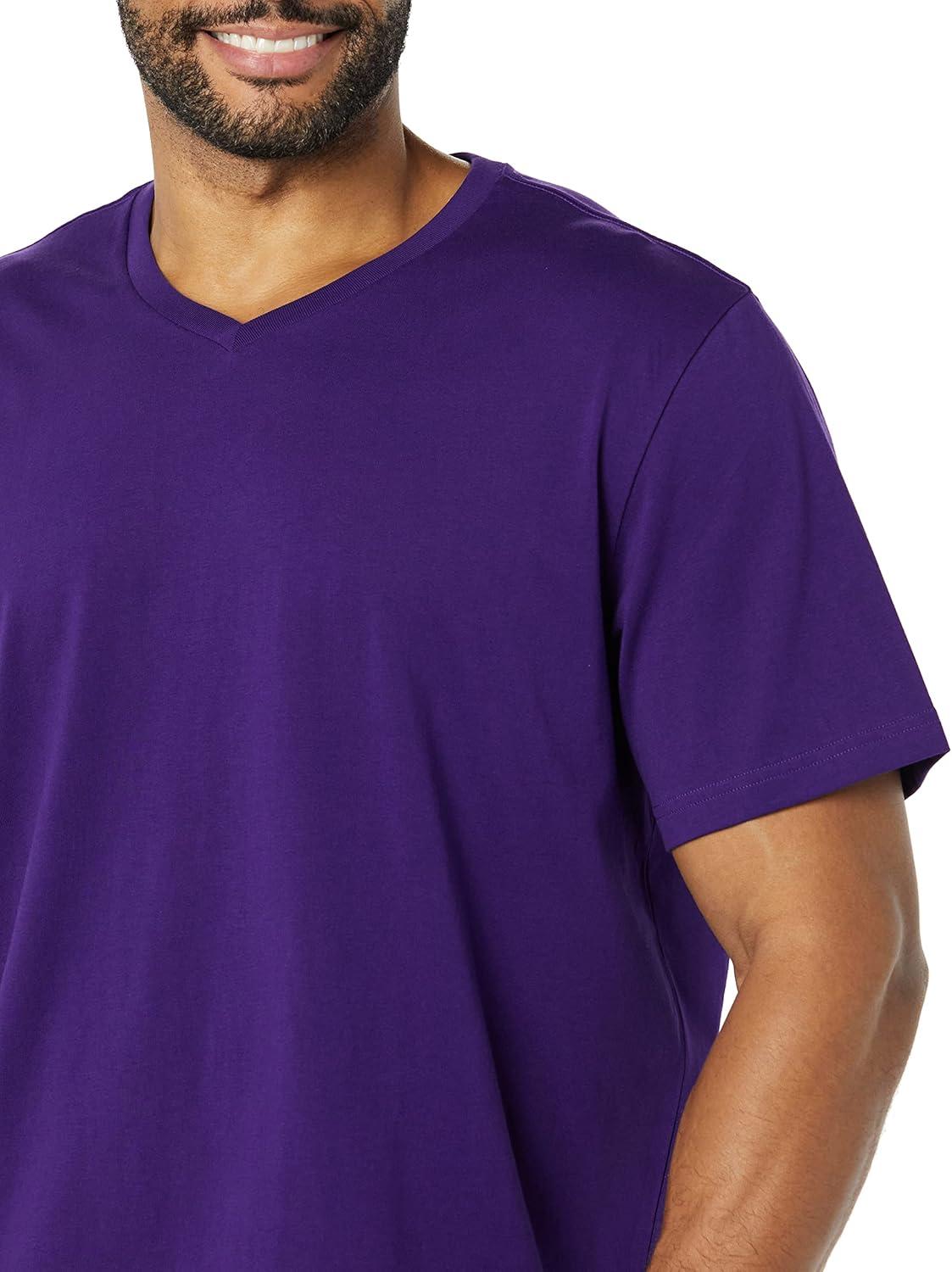 Amazon Essentials Men's Short-Sleeve V-Neck T-Shirts, Pack of 2(Black/Dark Purple)