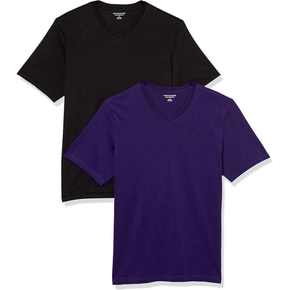 Amazon Essentials Men’s Short-Sleeve V-Neck T-Shirts, Pack of 2(Black/Dark Purple)
