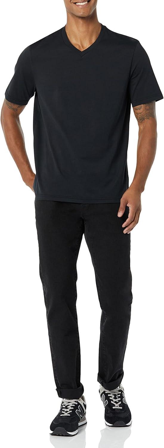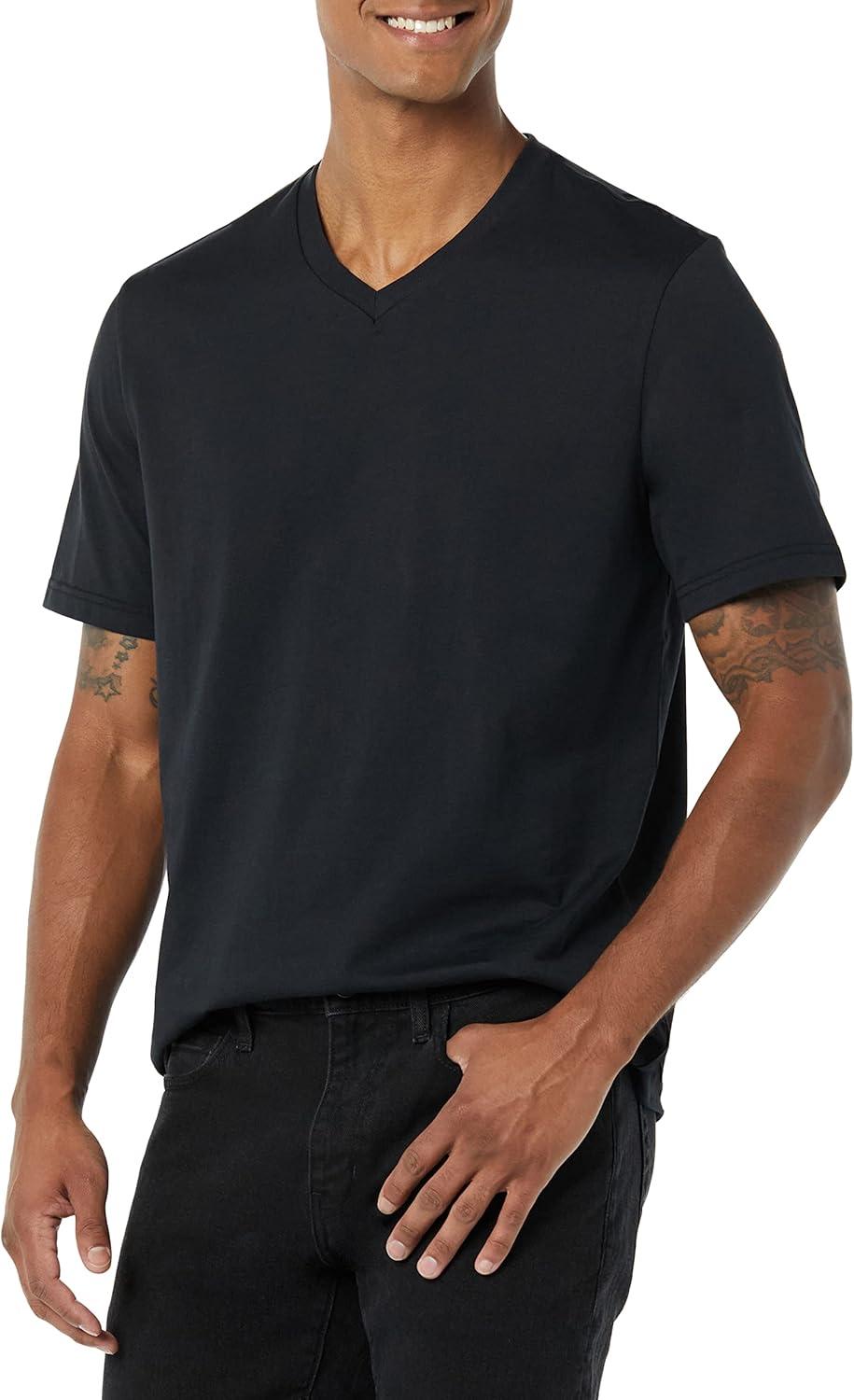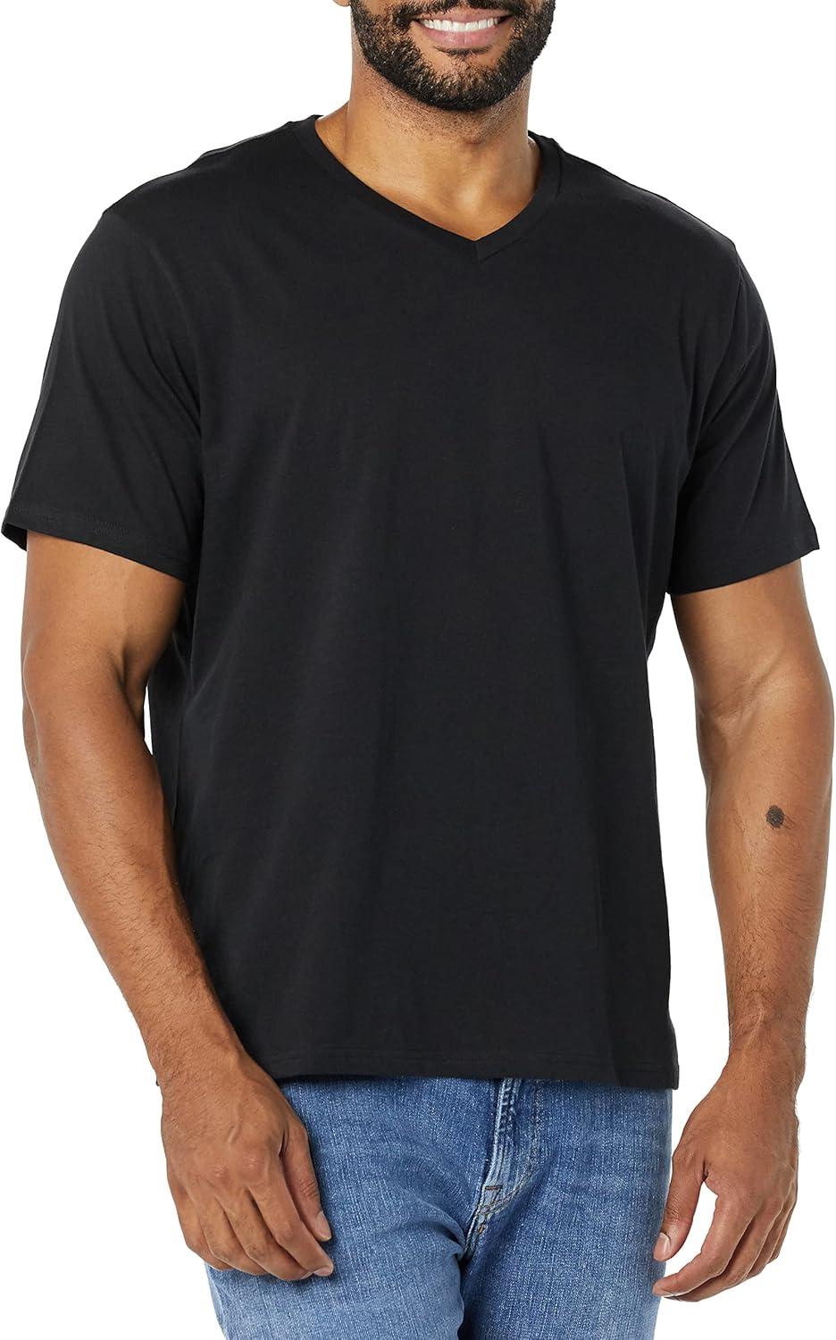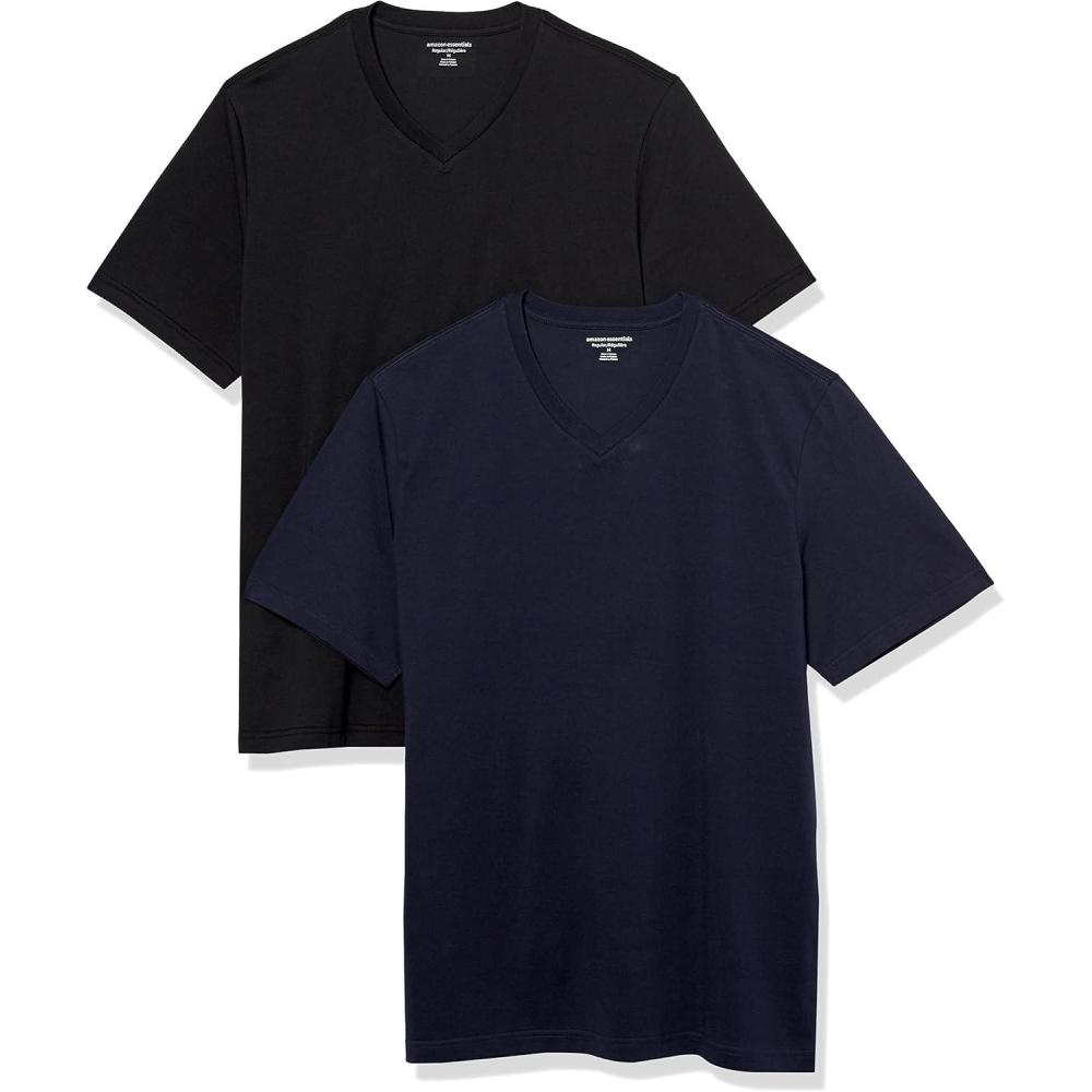Amazon Essentials Men’s Short-Sleeve V-Neck T-Shirts, Pack of 2(Black/Navy)