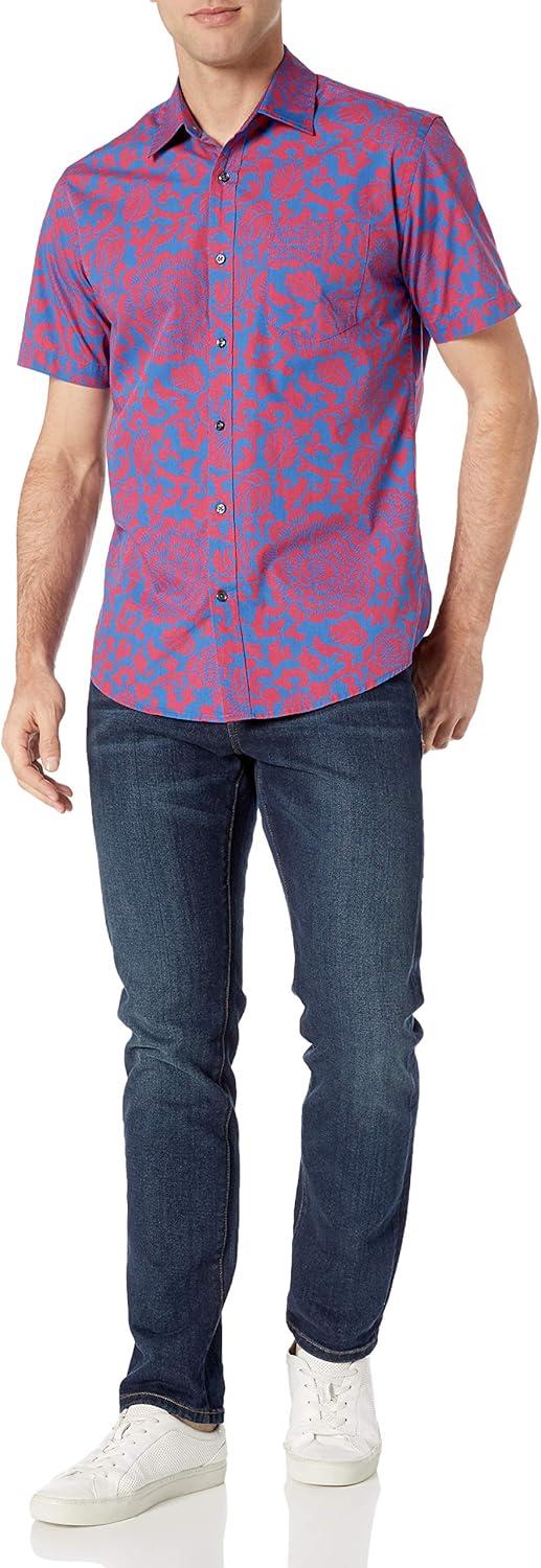Amazon Essentials Men’s Short-Sleeve V-Neck T-Shirts, Pack of 2(Blue Floral)