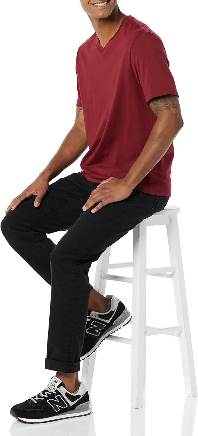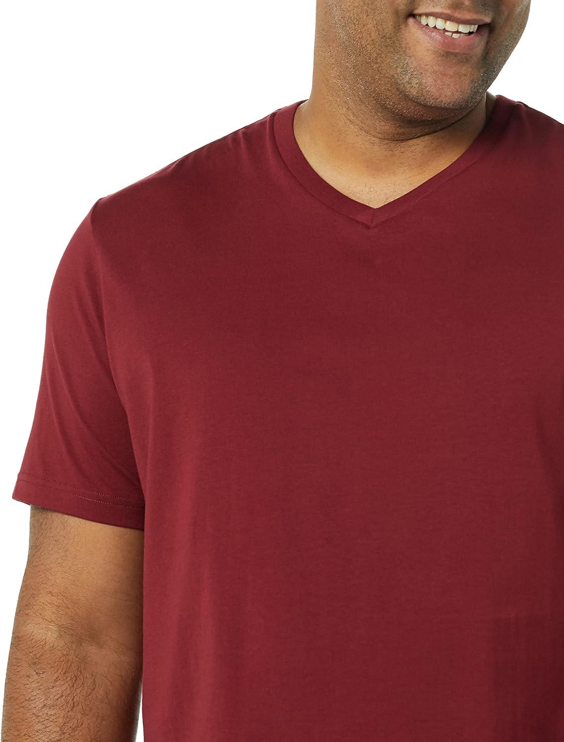 Amazon Essentials Men's Short-Sleeve V-Neck T-Shirts, Pack of 2(Charcoal Heather/Burgundy)
