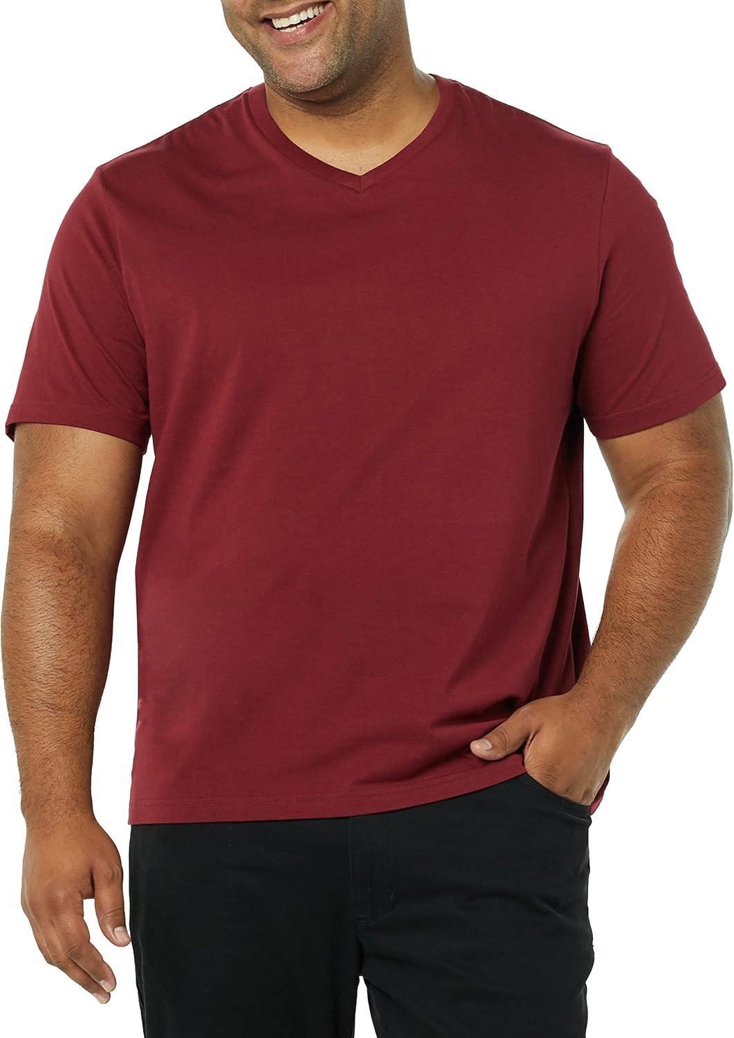 Amazon Essentials Men’s Short-Sleeve V-Neck T-Shirts, Pack of 2(Charcoal Heather/Burgundy)