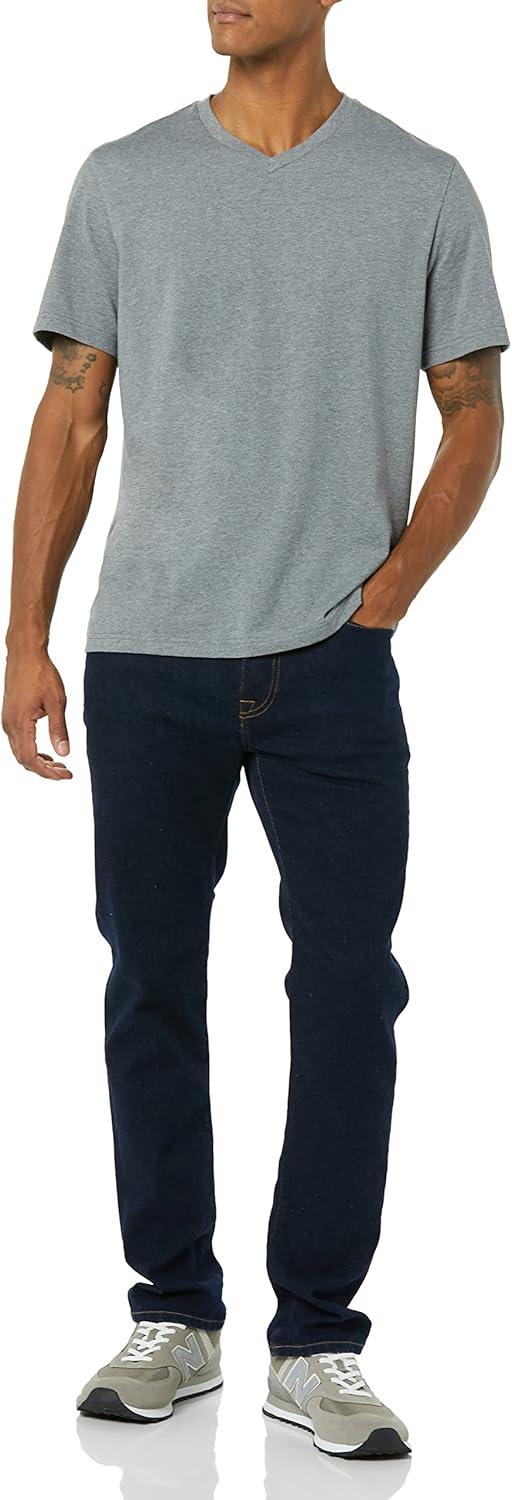 Amazon Essentials Men’s Short-Sleeve V-Neck T-Shirts, Pack of 2(Grey Heather/Navy Stripe)