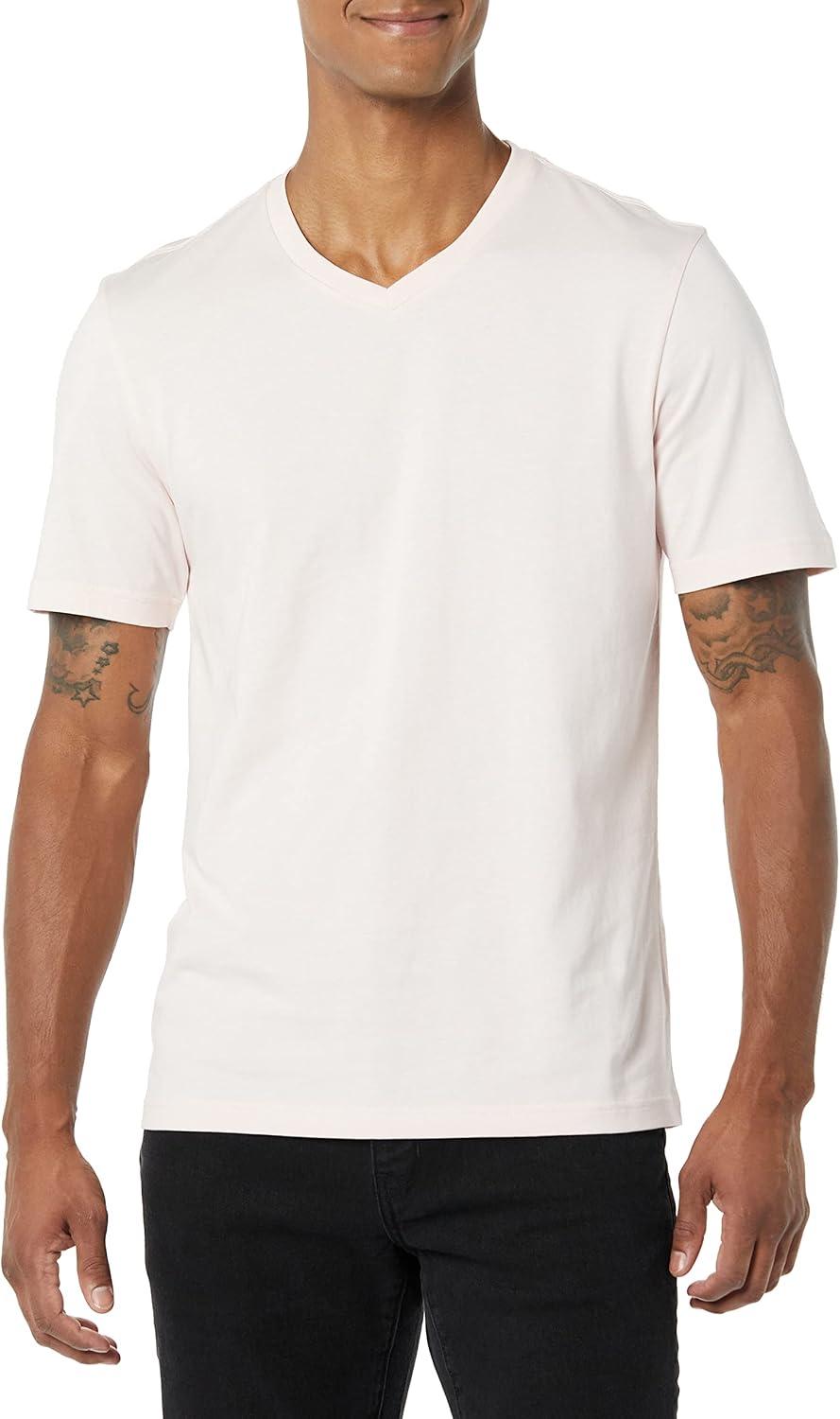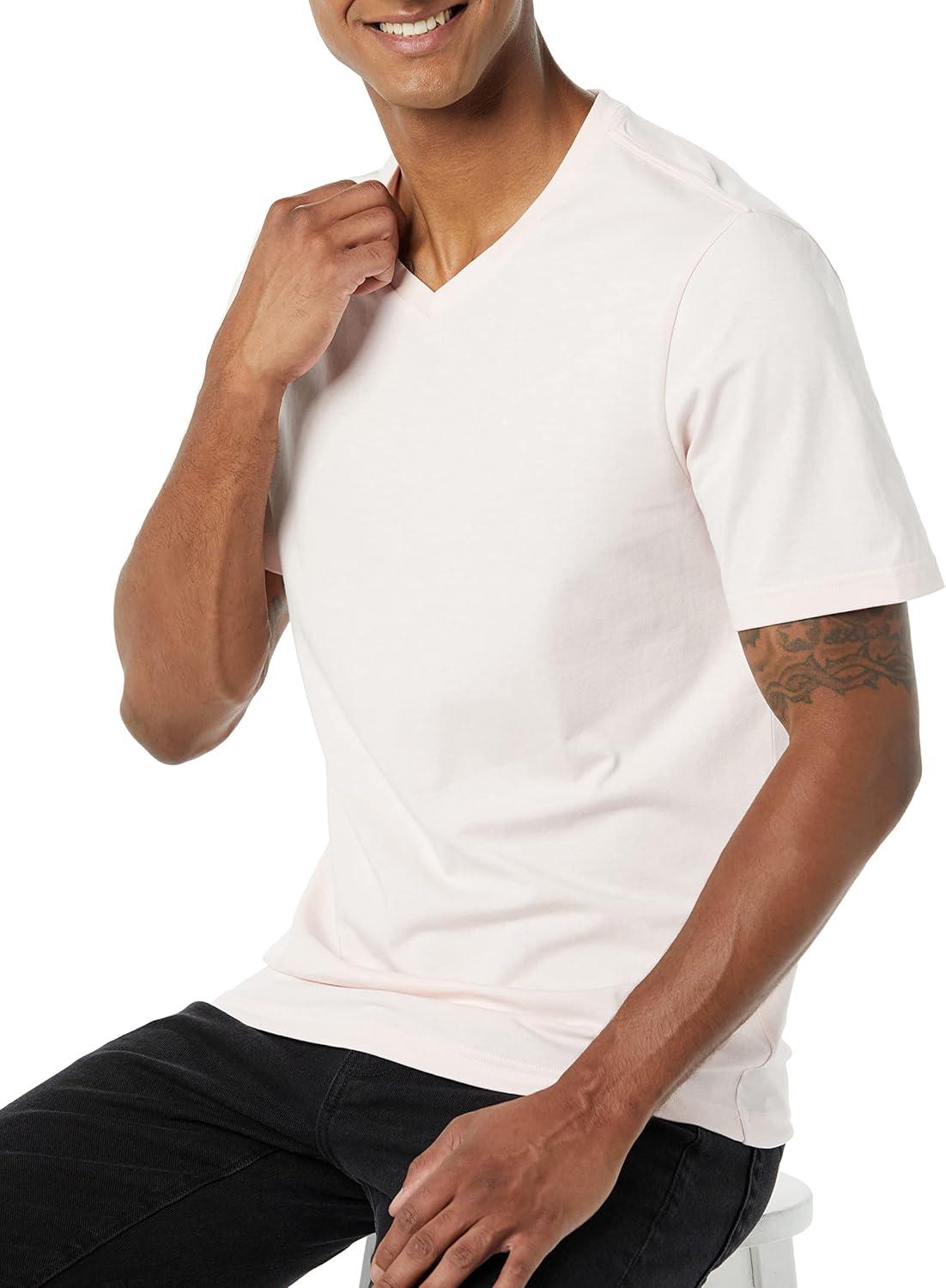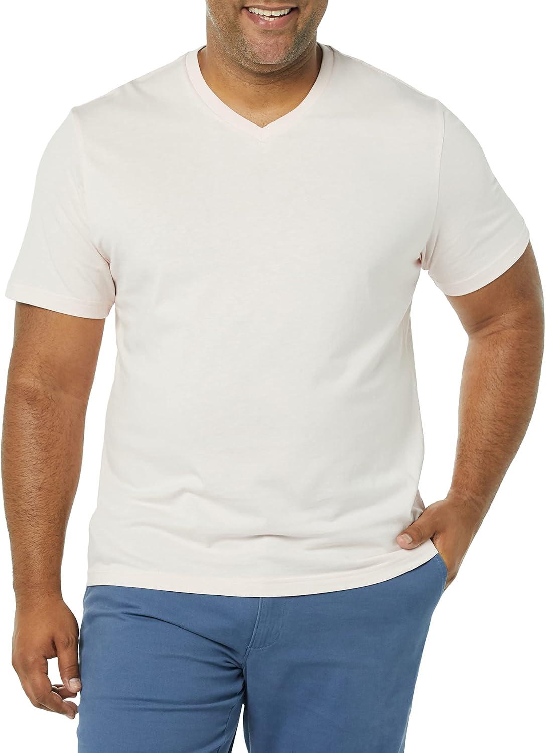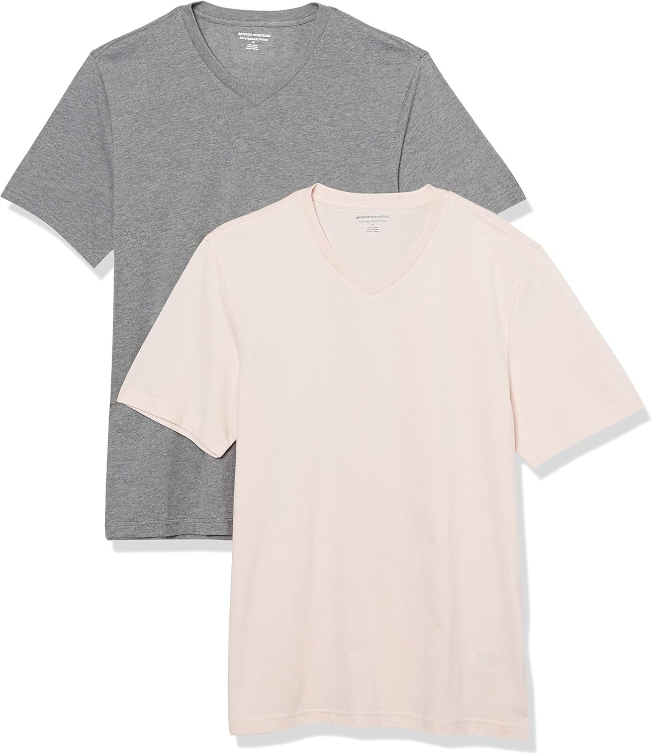 Amazon Essentials Men's Short-Sleeve V-Neck T-Shirts, Pack of 2(Grey Heather/Pale Pink)