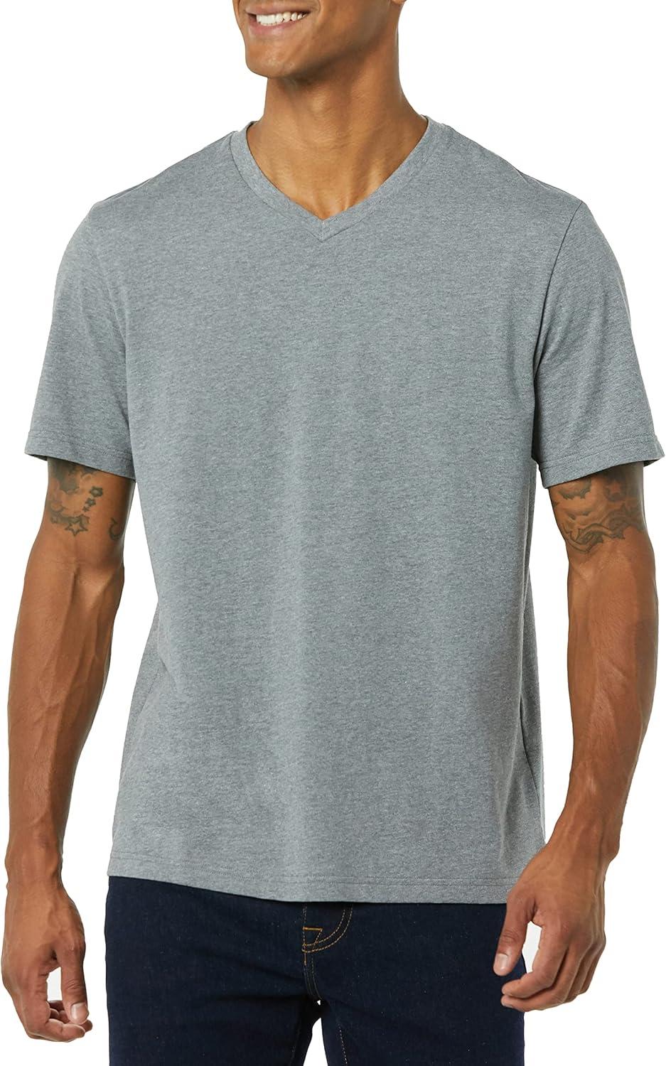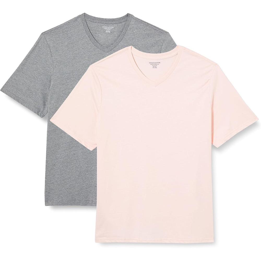 Amazon Essentials Men’s Short-Sleeve V-Neck T-Shirts, Pack of 2(Grey Heather/Pale Pink)