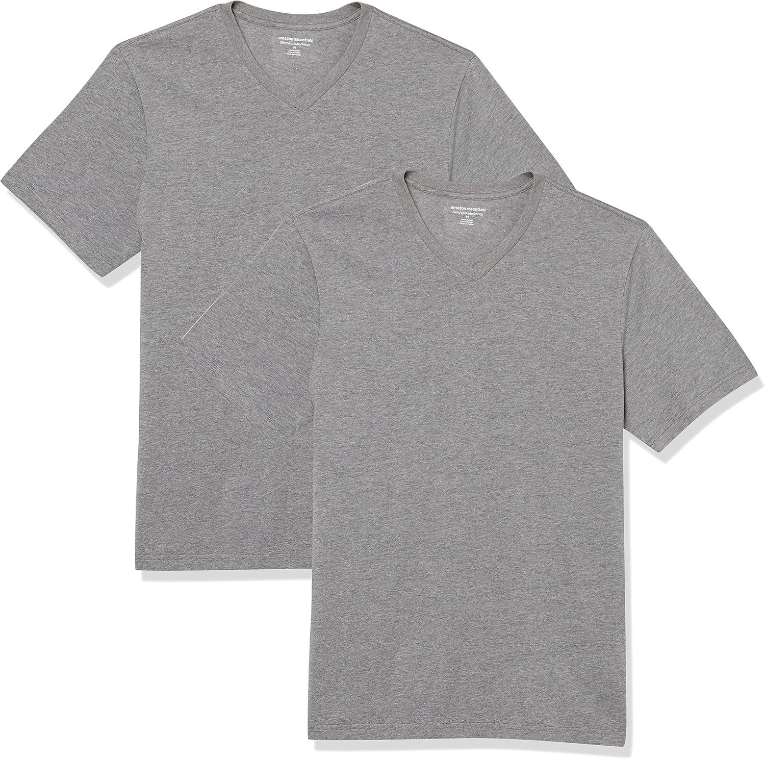 Amazon Essentials Men’s Short-Sleeve V-Neck T-Shirts, Pack of 2(Grey Heather)