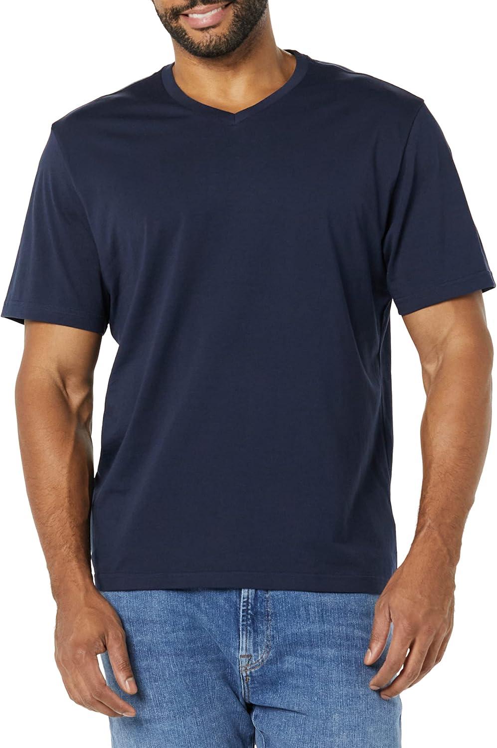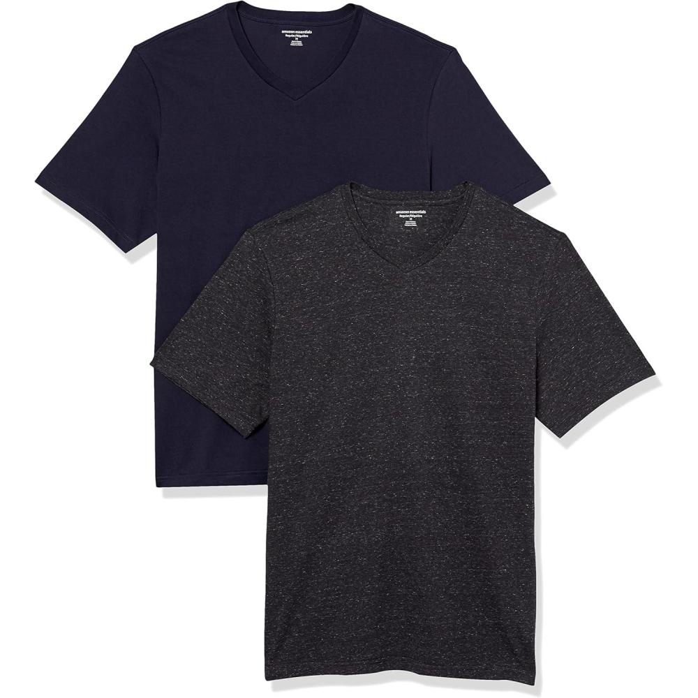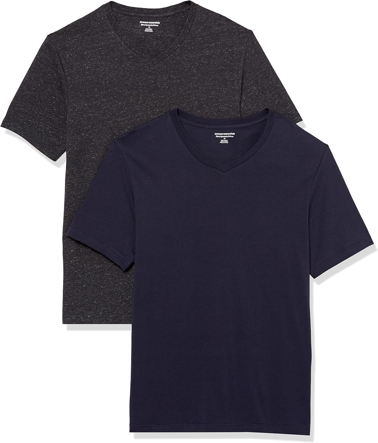 Amazon Essentials Men’s Short-Sleeve V-Neck T-Shirts, Pack of 2(Navy/Charcoal Heather)