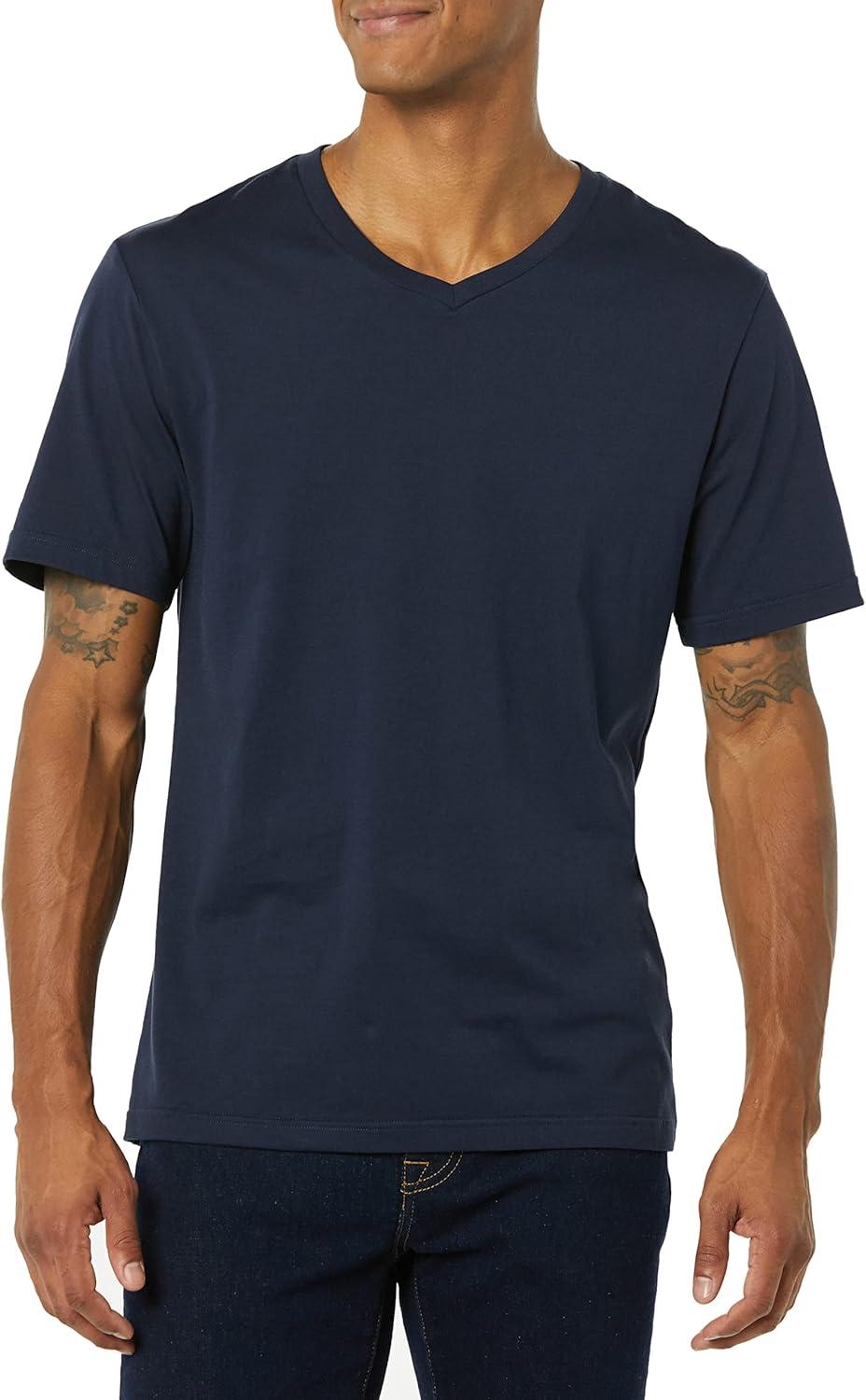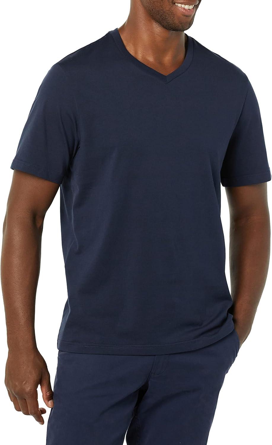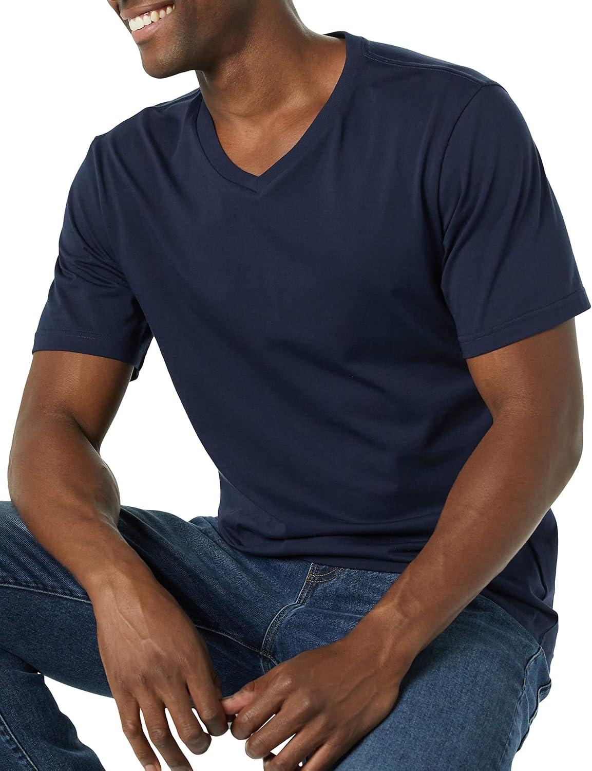 Amazon Essentials Men’s Short-Sleeve V-Neck T-Shirts, Pack of 2(Navy/Charcoal Heather)
