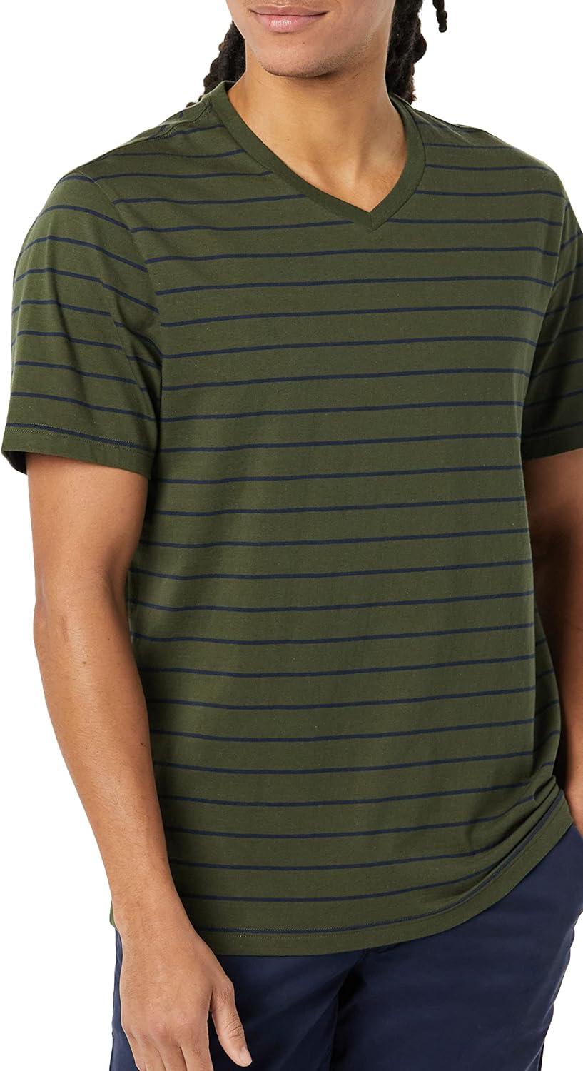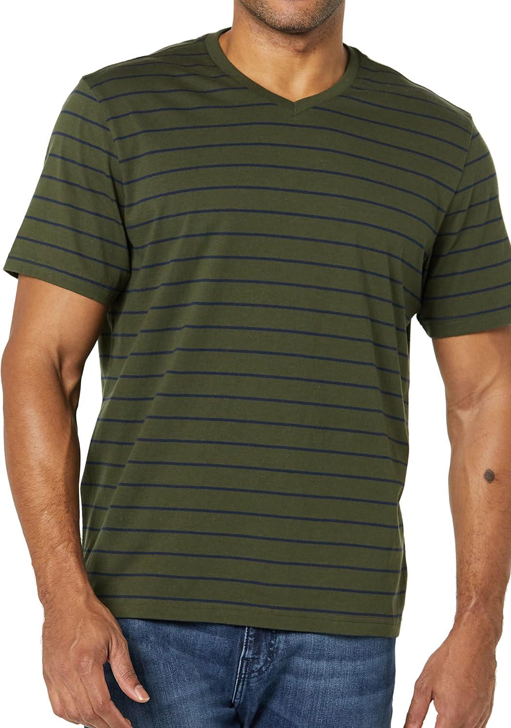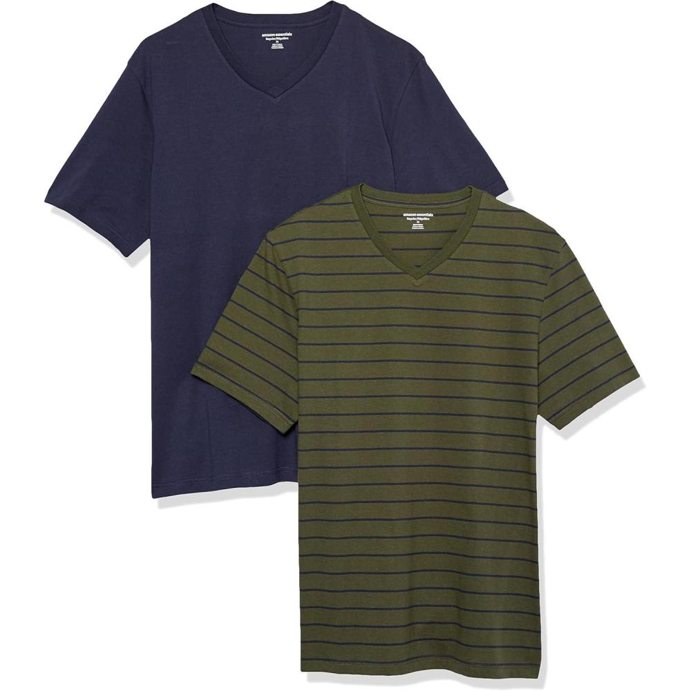 Amazon Essentials Men’s Short-Sleeve V-Neck T-Shirts, Pack of 2(Navy/Olive/Stripe)