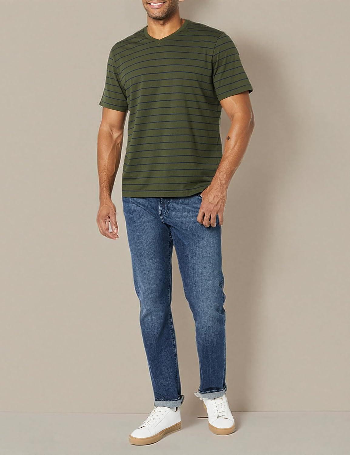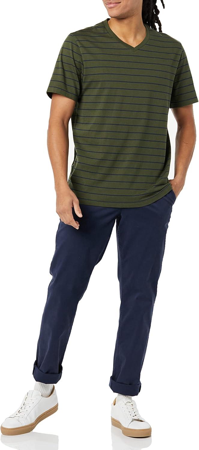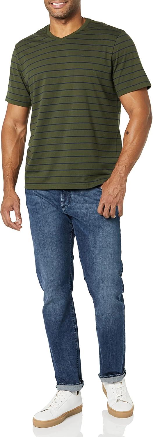 Amazon Essentials Men’s Short-Sleeve V-Neck T-Shirts, Pack of 2(Navy/Olive/Stripe)