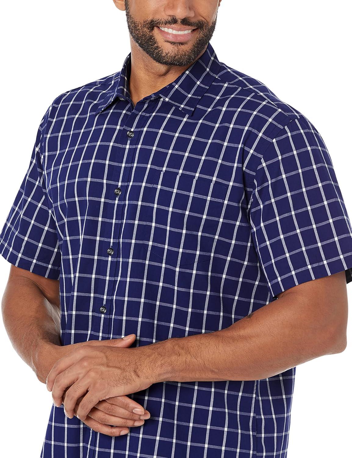 Amazon Essentials Men’s Short-Sleeve V-Neck T-Shirts, Pack of 2(Navy Medium Plaid)