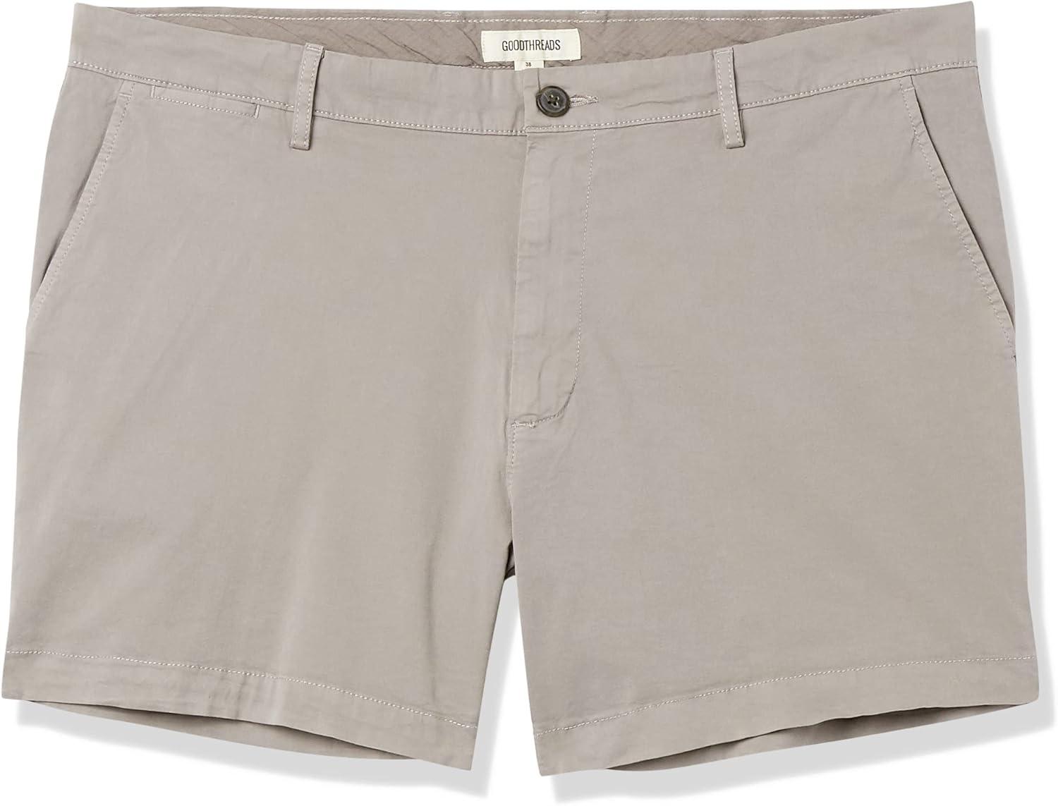 Amazon Essentials Men’s Slim-Fit 5″ Flat-Front Comfort Stretch Chino Short (Previously Goodthreads)(Light Grey)