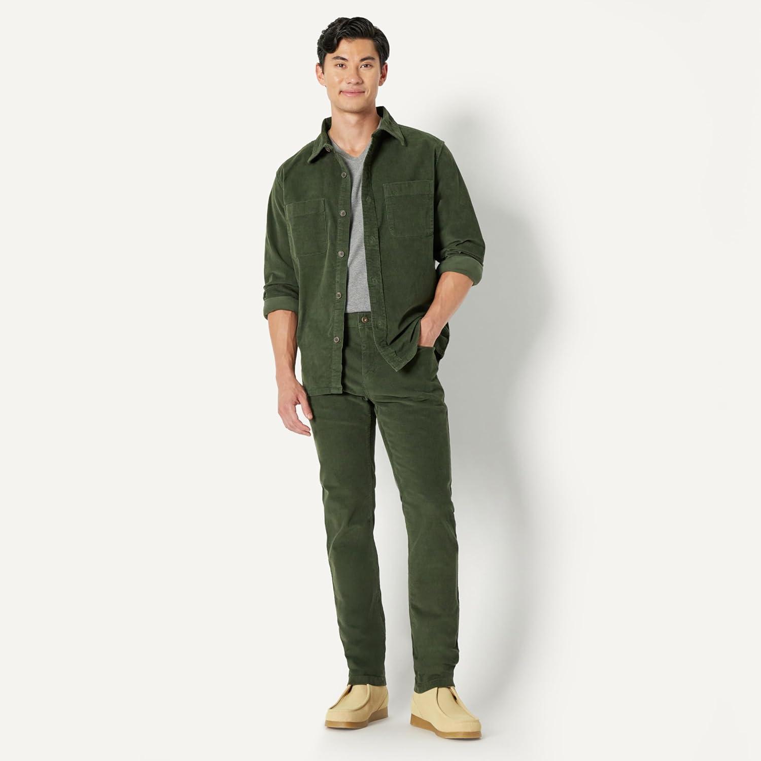 Amazon Essentials Mens Slim Fit 5 Pocket Corduroy Pant(Dark Olive)