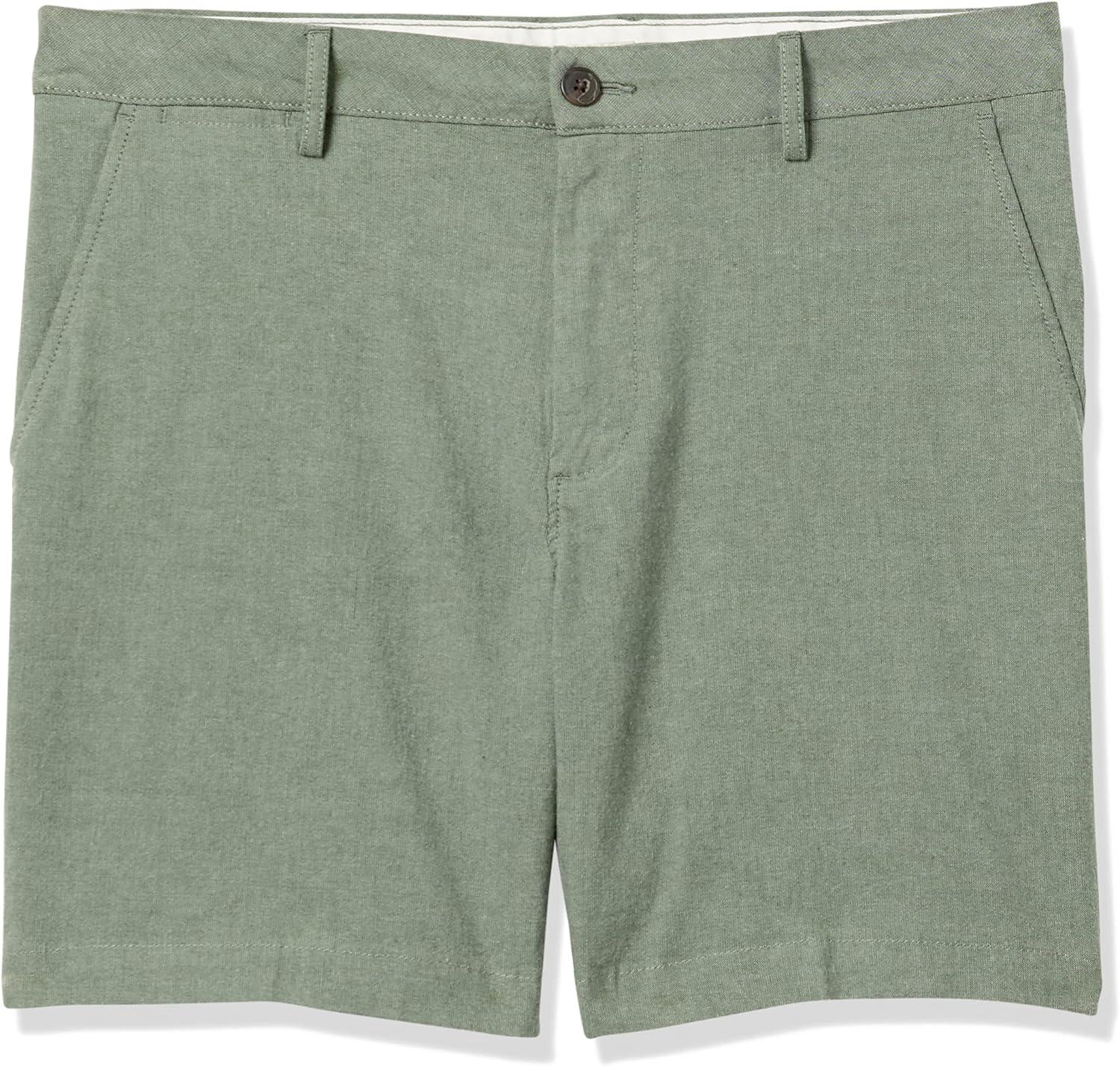 Amazon Essentials Men’s Slim-Fit 7″ Lightweight Comfort Stretch Oxford Shorts(Olive)