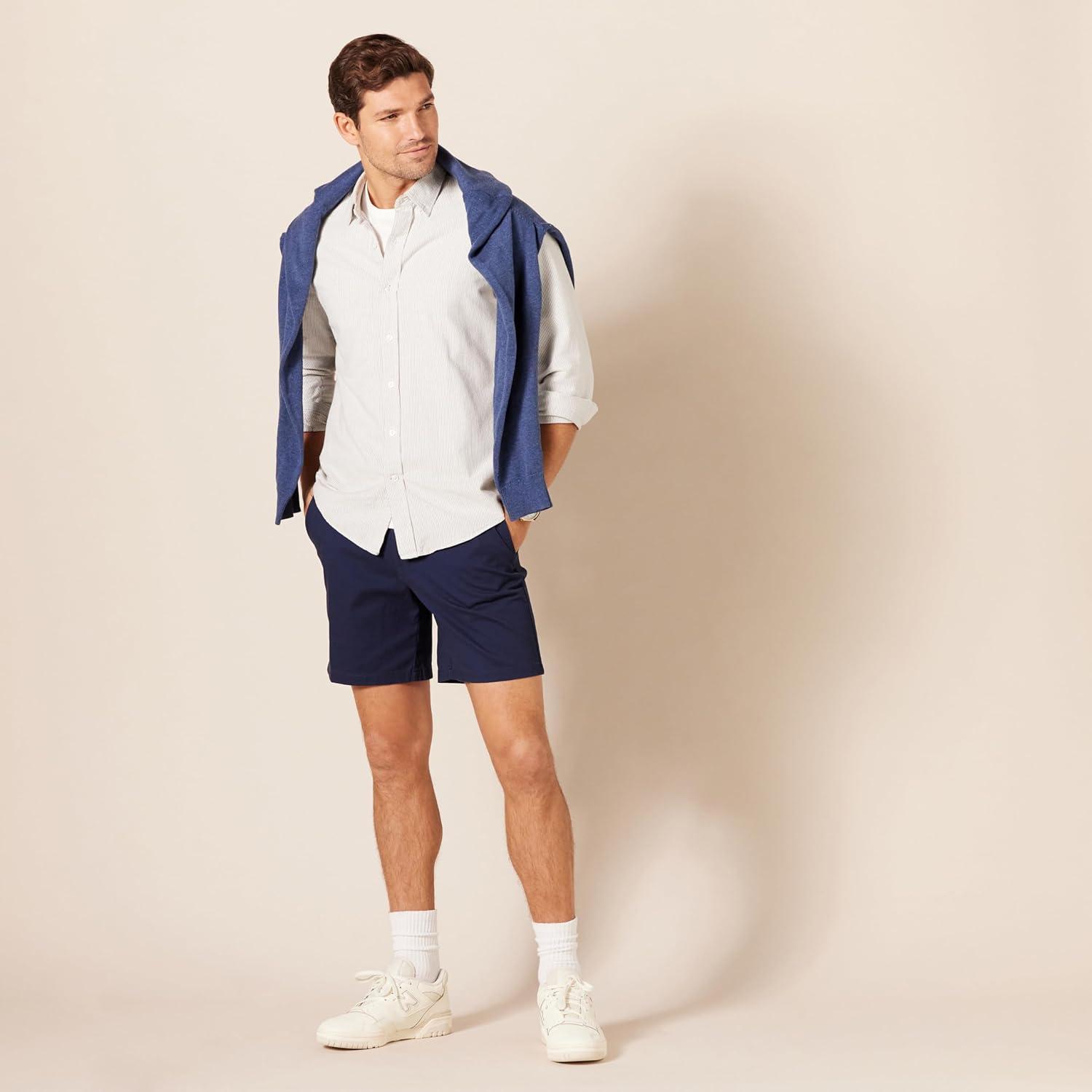 Amazon Essentials Men’s Slim-Fit 7″ Stretch Chino Short(Navy)