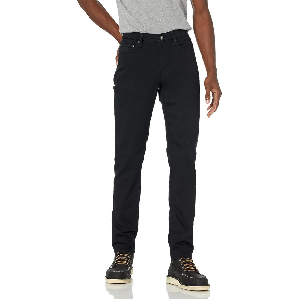 These jeans are designed with a slim fit through the hip and thigh and feature a tapered leg that sits comfortably at the waist. Crafted from a cotton-blend denim, these comfort stretch jeans offer all-day comfort and a superior fit. These men's slim fit jeans blend functionality and fashion, making them a versatile addition to any wardrobe. The jeans feature a classic five-pocket design, bartack reinforcements and rivets at the front hand pockets, a zippered fly, and a metal button closure. Be sure to hang these men's stretch jeans to dry, extending their garment life.