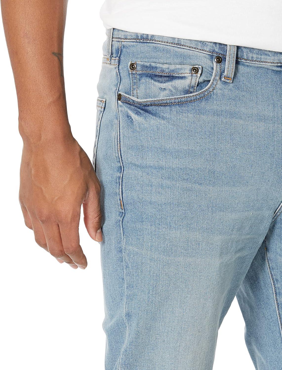 These jeans are designed with a slim fit through the hip and thigh and feature a tapered leg that sits comfortably at the waist. Crafted from a cotton-blend denim, these comfort stretch jeans offer all-day comfort and a superior fit. These men's slim fit jeans blend functionality and fashion, making them a versatile addition to any wardrobe. The jeans feature a classic five-pocket design, bartack reinforcements and rivets at the front hand pockets, a zippered fly, and a metal button closure. Be sure to hang these men's stretch jeans to dry, extending their garment life.